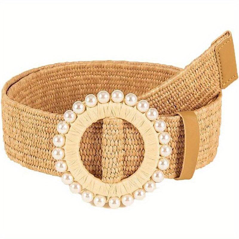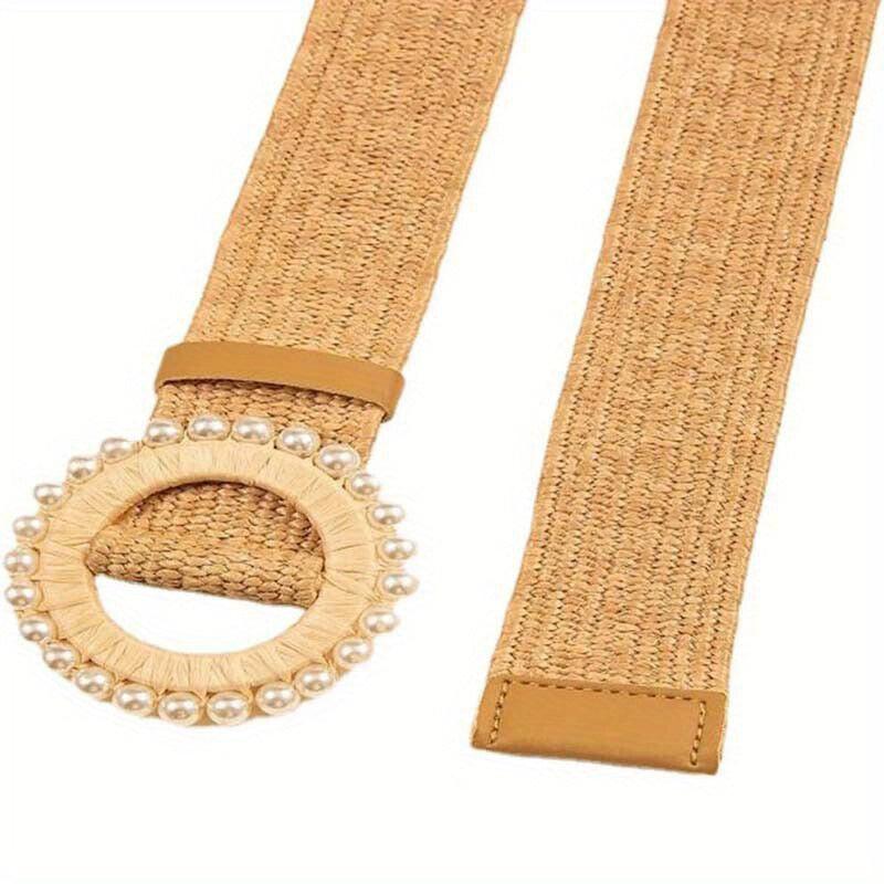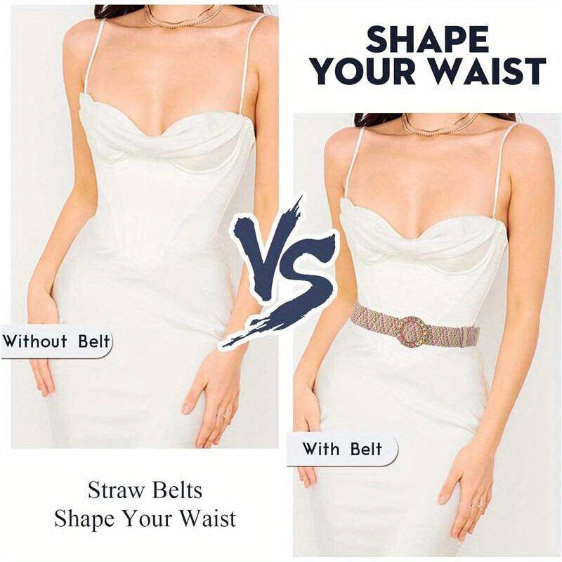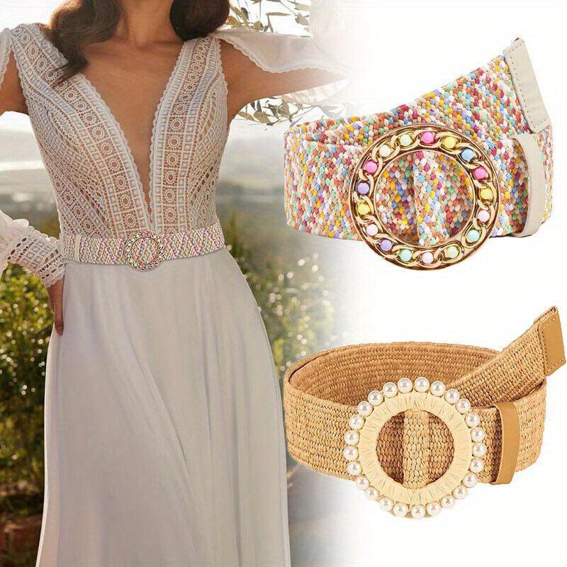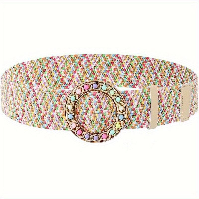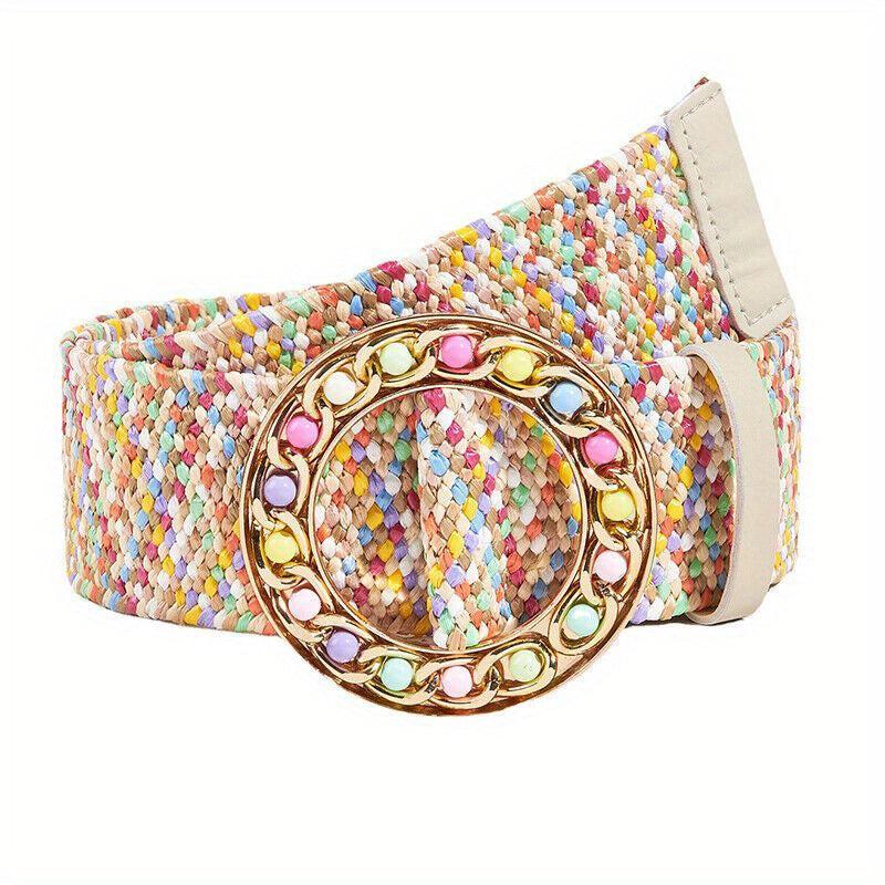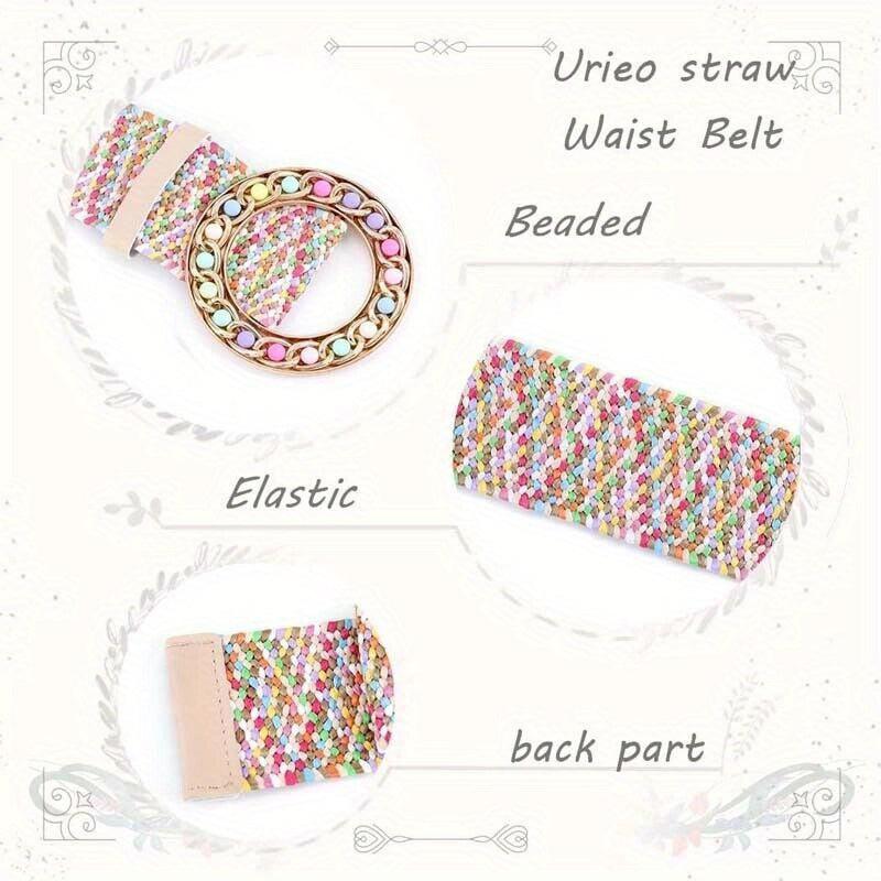 Add a touch of vintage charm with this colorful elastic buckle belt crafted from straw material. Perfect accessory for a boho chic look.