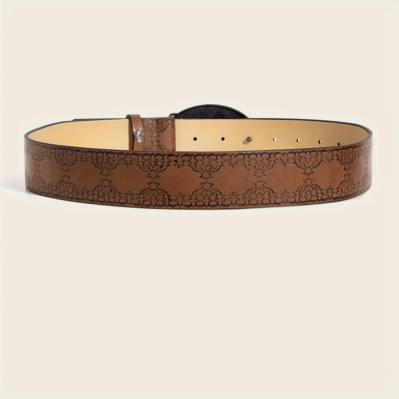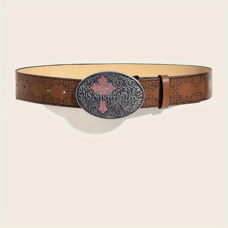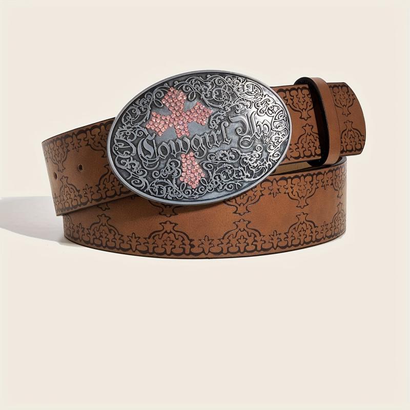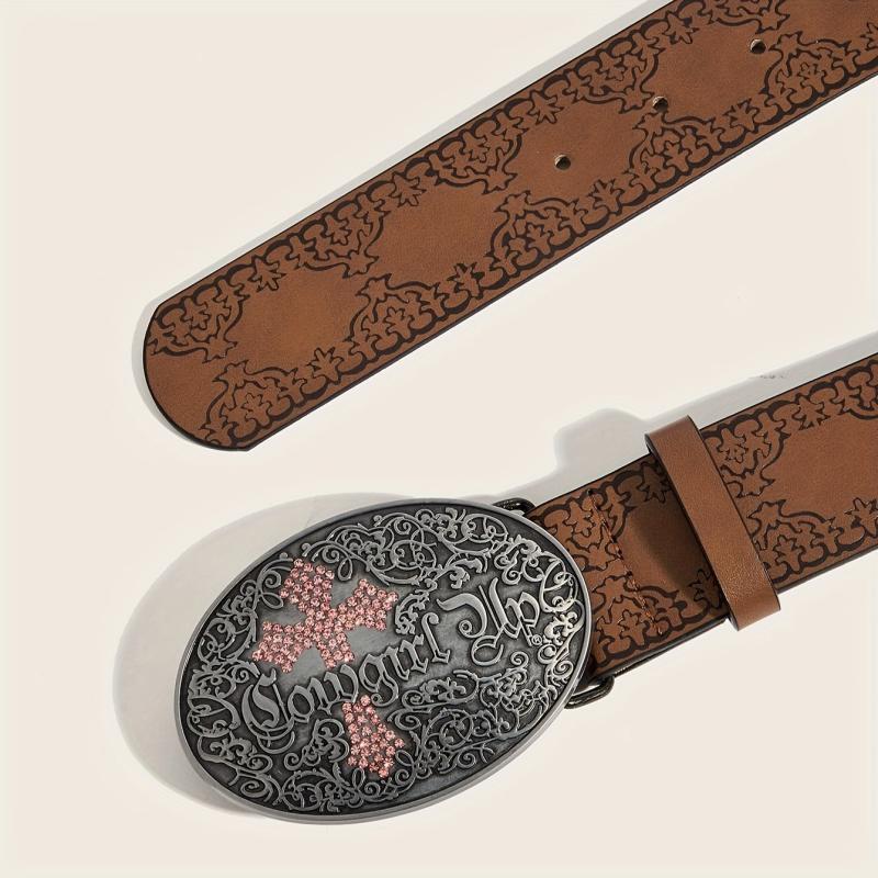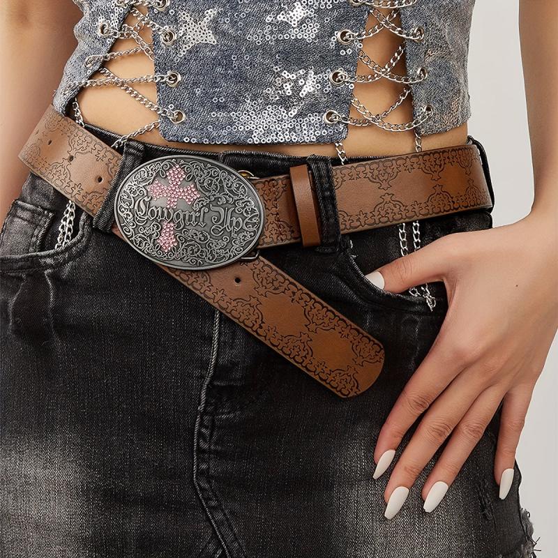 Add a touch of personality to your outfit with this rhinestone buckle printed waist belt. Made of alloy and faux leather, it's adjustable and perfect for parties or everyday wear.