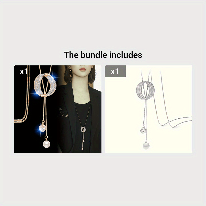 Elevate your casual attire with this versatile necklace featuring sparkling rhinestones and a pearl pendant. Perfect for adding a touch of elegance to your everyday look.