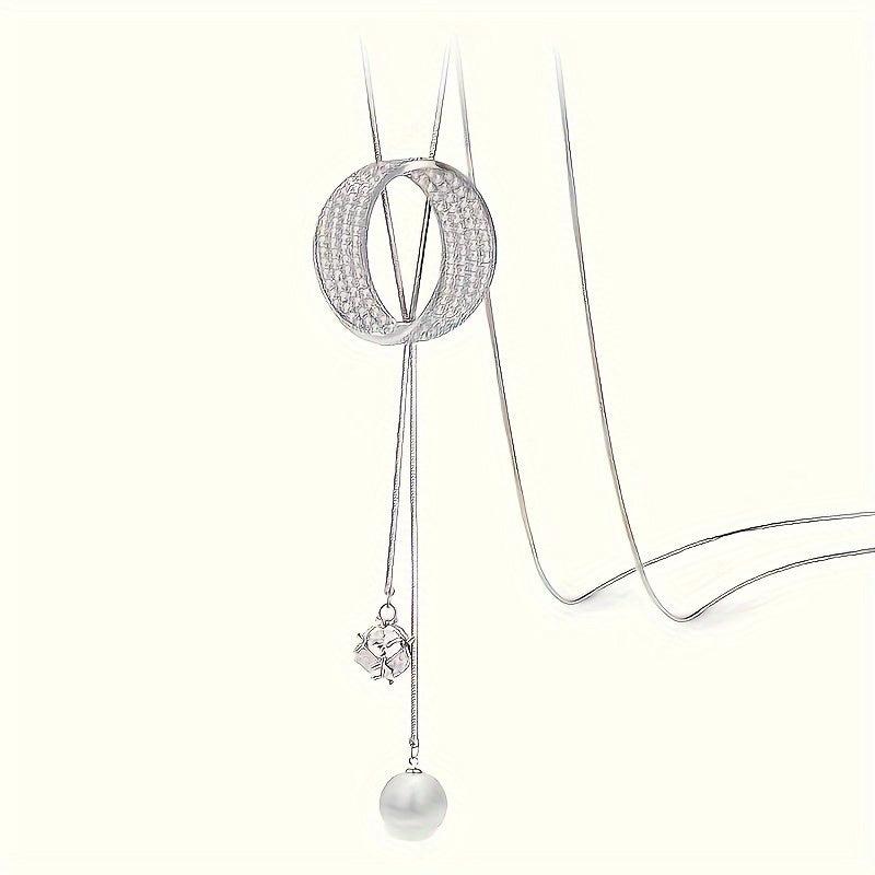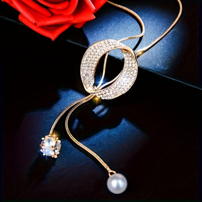 Rhinestone Necklace with Pearl Pendant Long Chain Jewelry