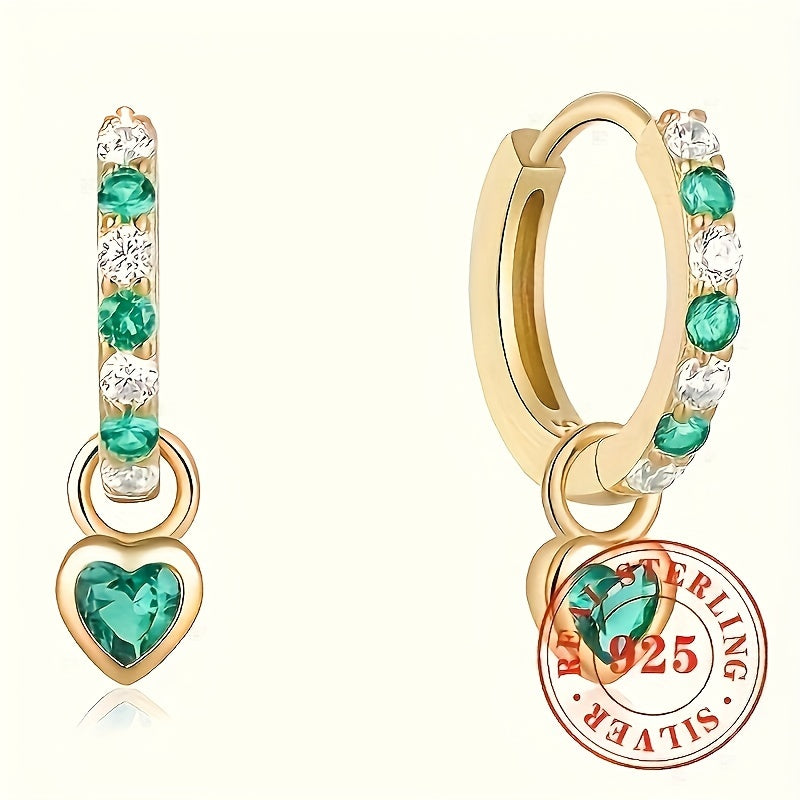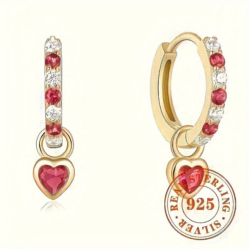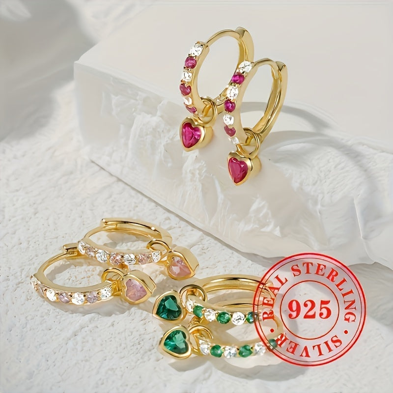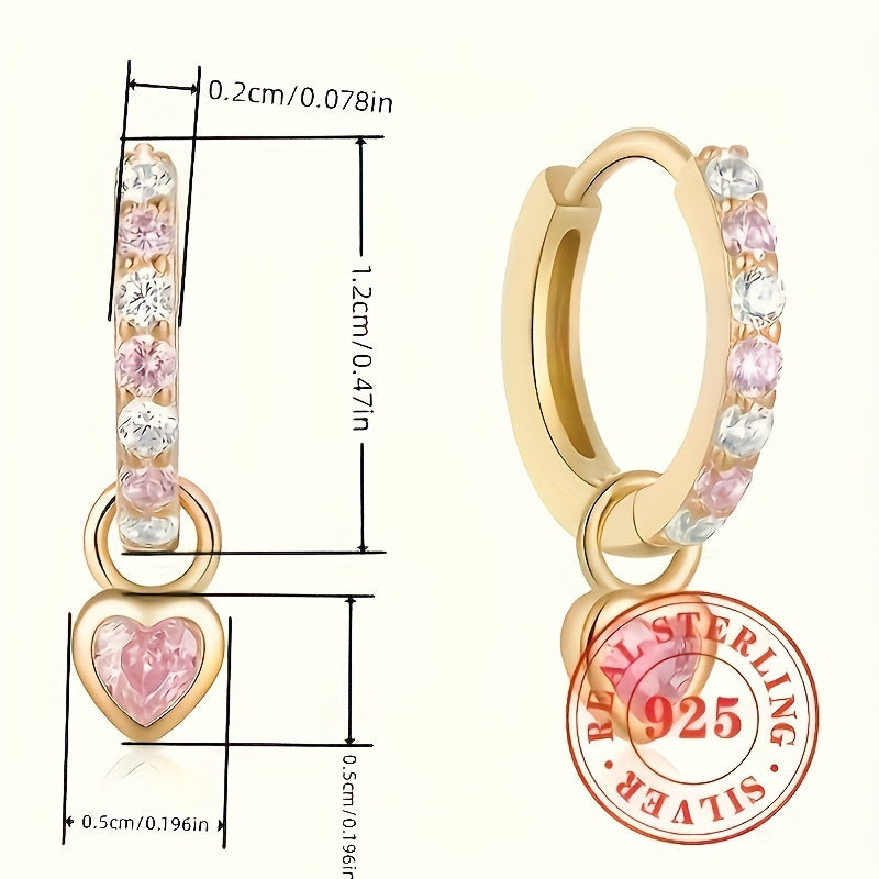 These stunning hoop earrings feature a heart pendant with zirconia stones. Made of high-quality 925 sterling silver with a 18K gold plating. Perfect for adding a touch of elegance to any outfit.