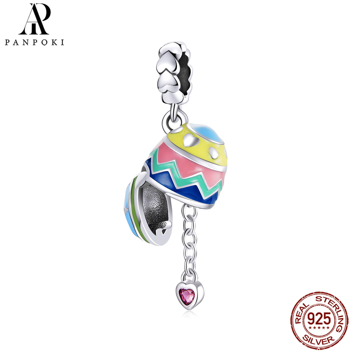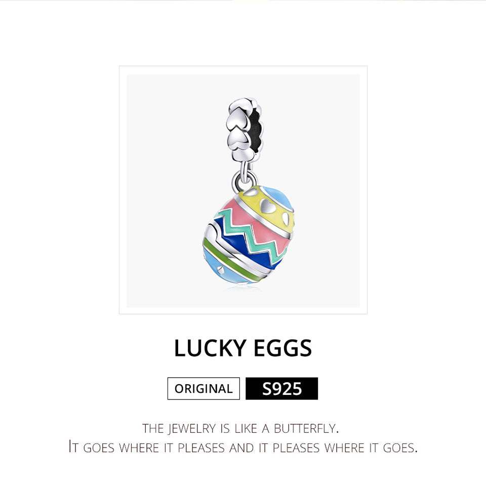 This S925 sterling silver bead is shaped like lucky Easter eggs, perfect for DIY jewelry making. Add a festive touch to your bracelets or necklace with this charming charm bead.
