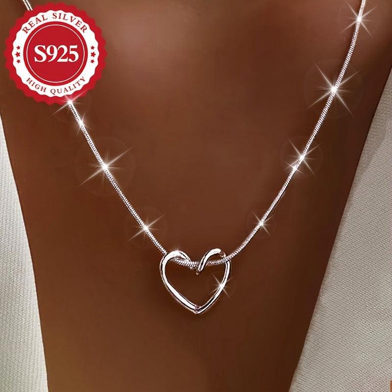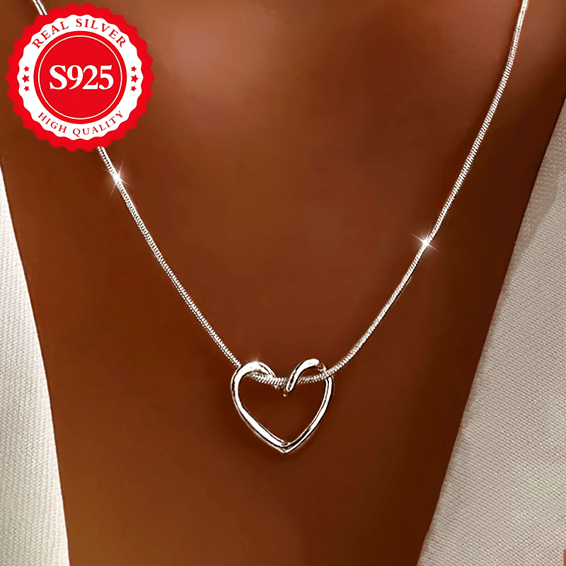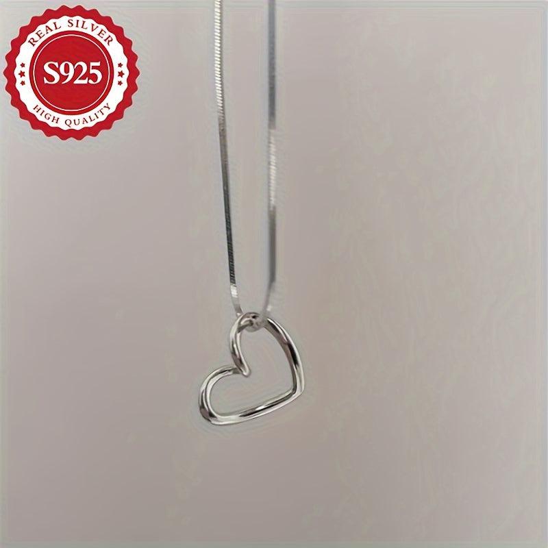 Elegant S925 pure silvery women's heart shaped snake bone chain pendant, perfect for a stylish look.