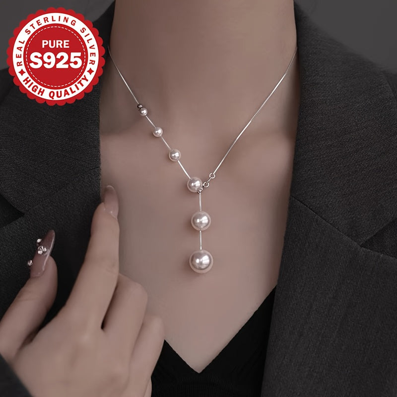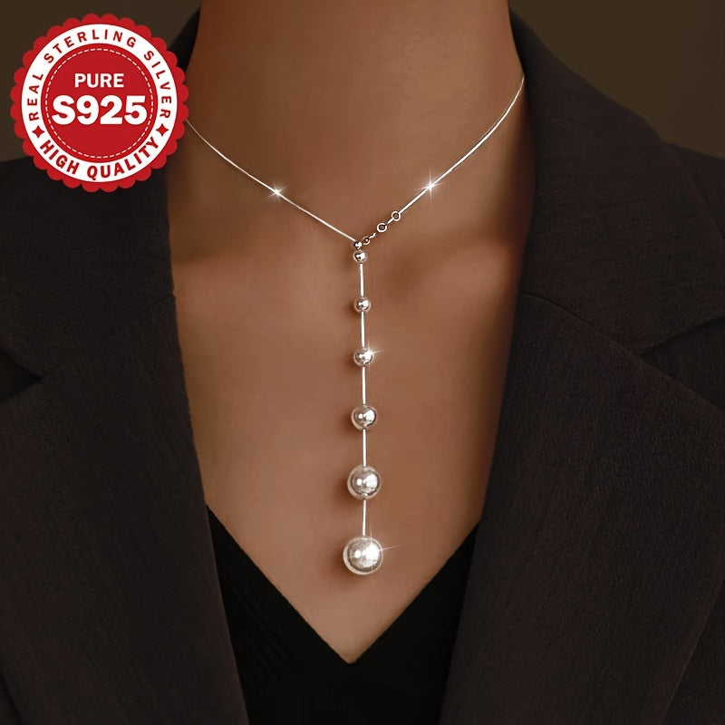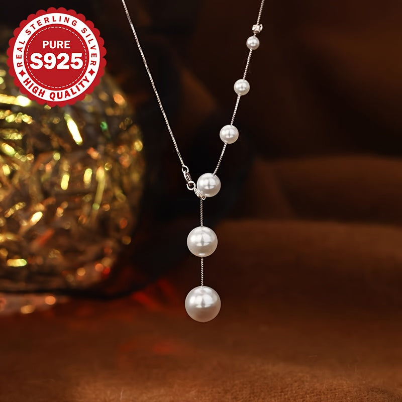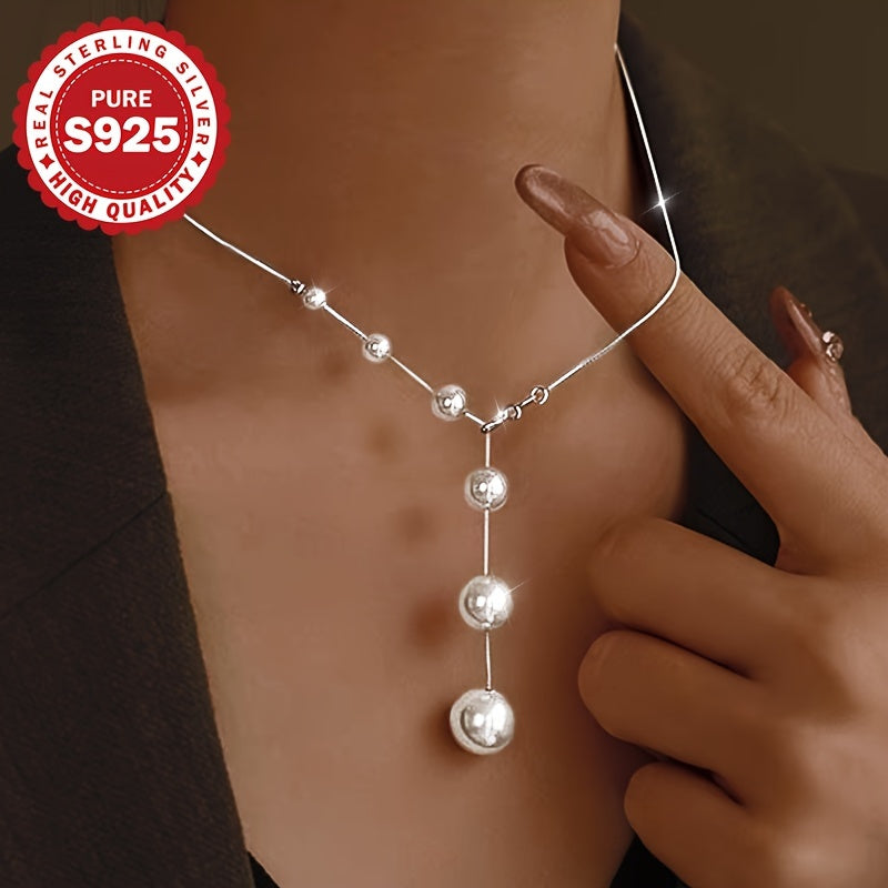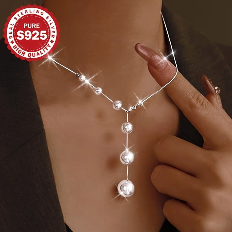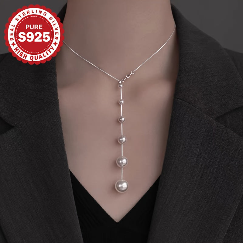 S925 Pure Silvery Gradient Shell Bead Necklace