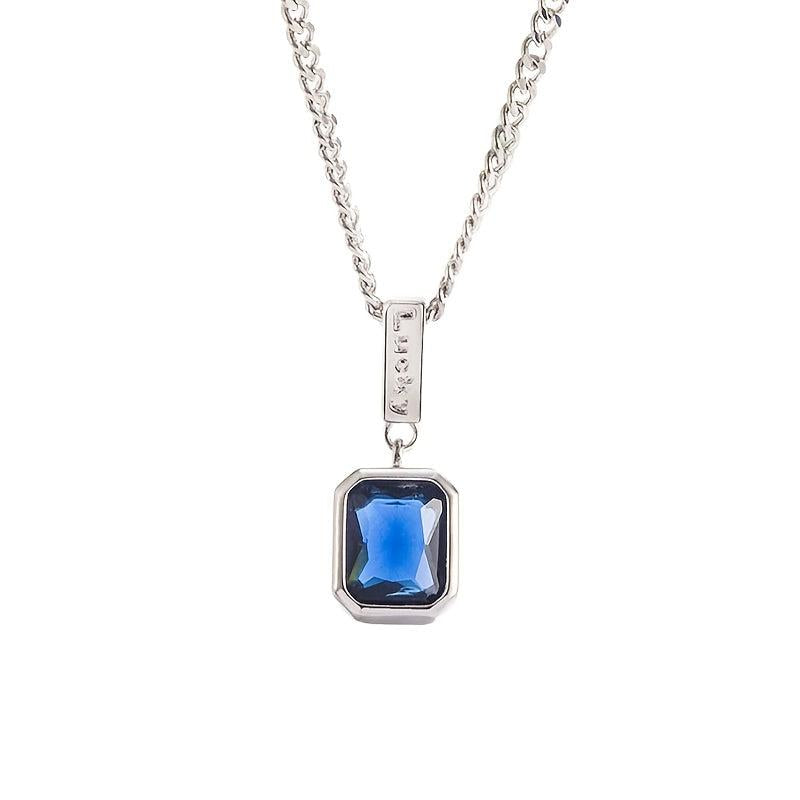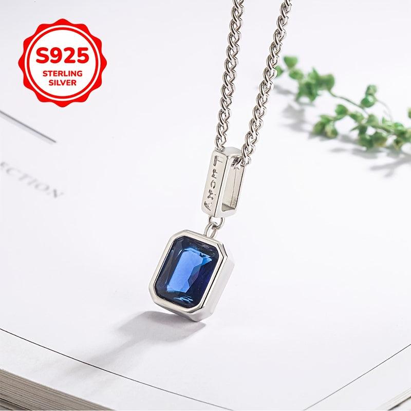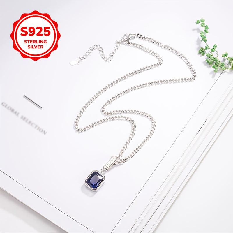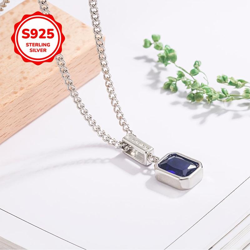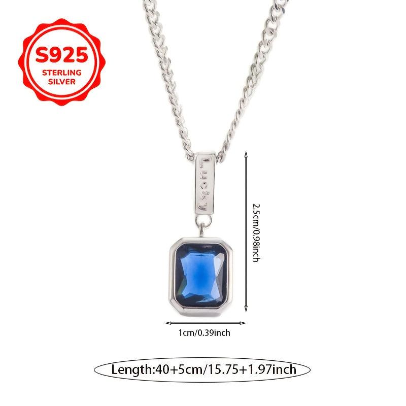 S925 Sea Chunky Chain Lucky Stone Square Necklace