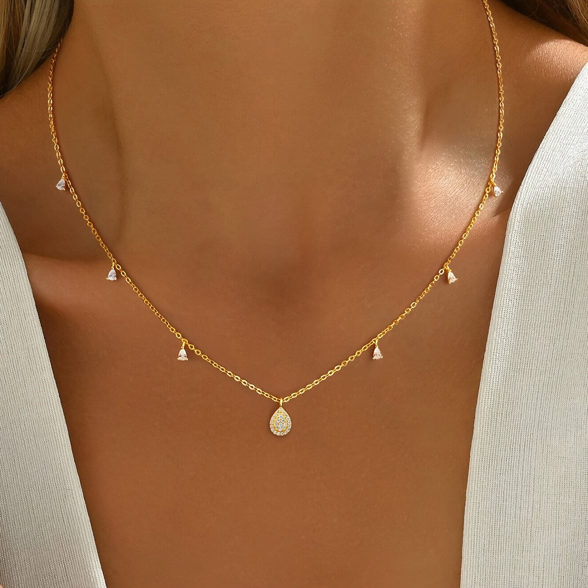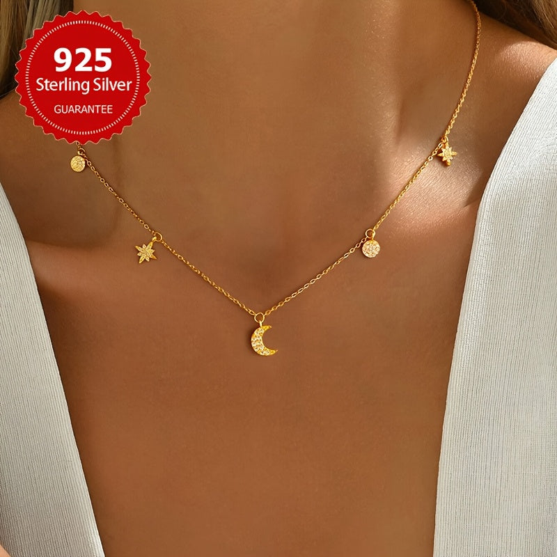 S925 Silver Star Moon Necklace Teardrop Pendant for Daily Wear