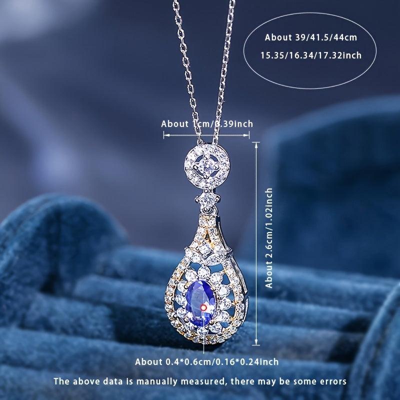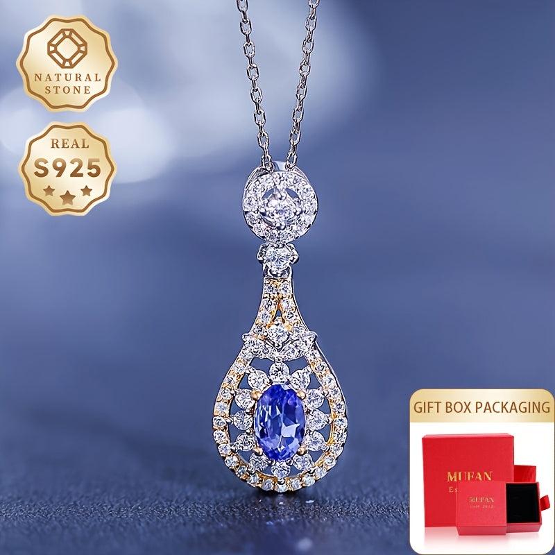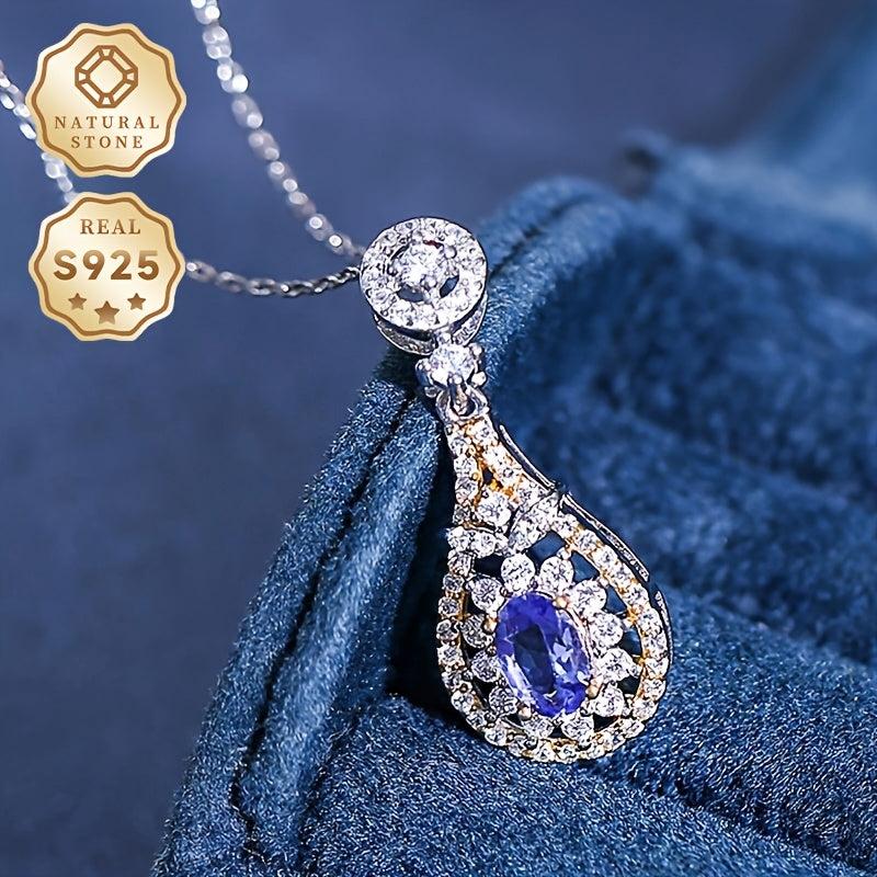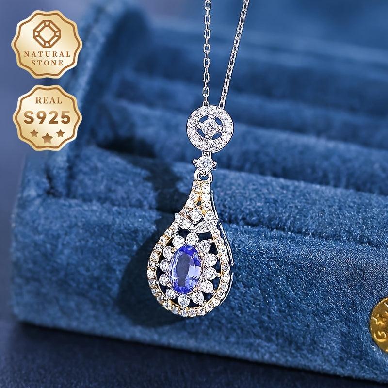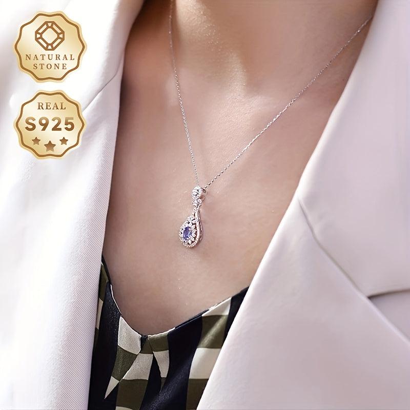 This elegant pendant necklace features a teardrop-shaped Tanzanite, crafted in S925 silver. It is fashionable and perfect for daily wear or as a gift for someone special.