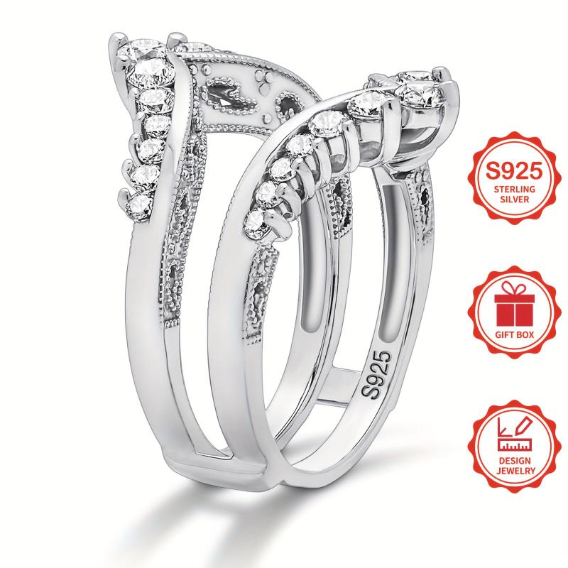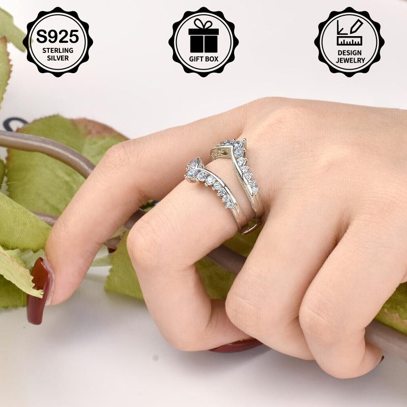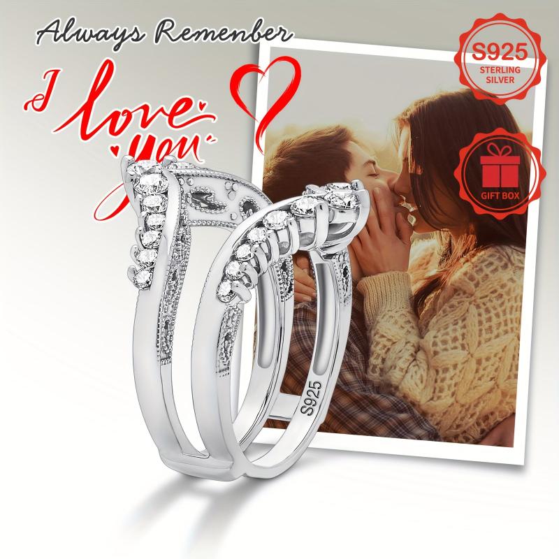 Beautiful set of S925 pure silvery rings inlaid with synthetic zirconia, perfect for low allergy, guardian promise, couple, Valentine's, engagement, mother's gift.