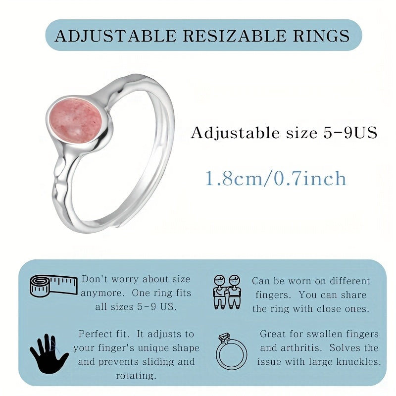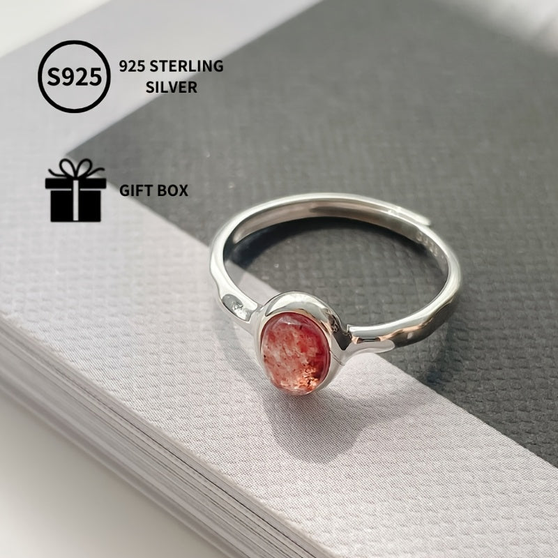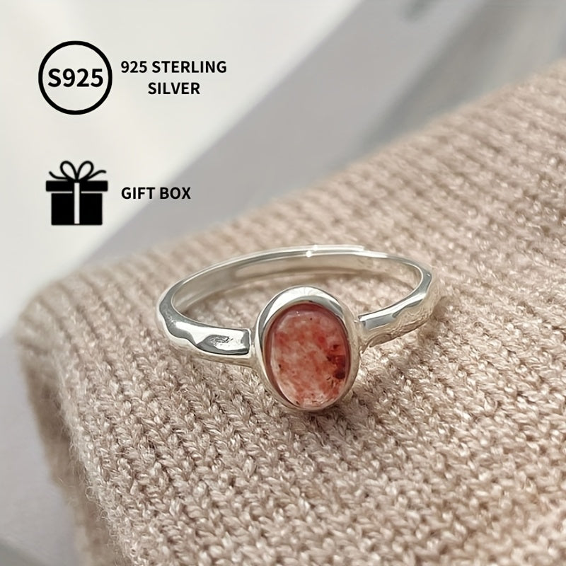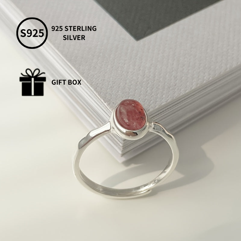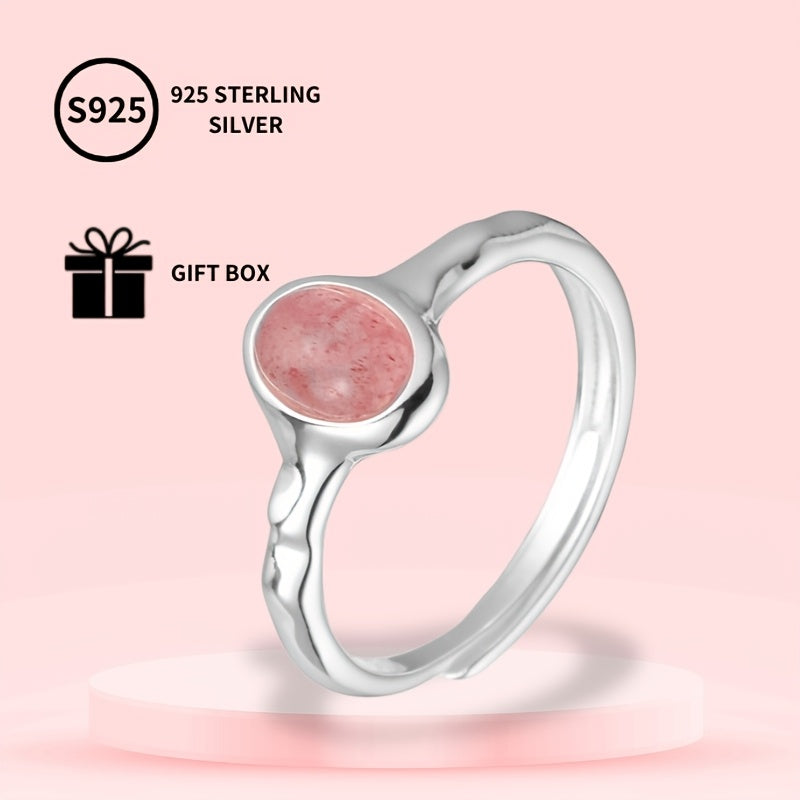 S925 Sterling Silver Ring Pink Oval Creative Temperament Gentle Hand Jewelry