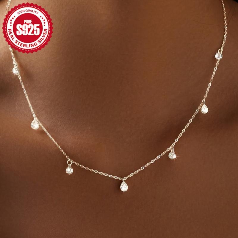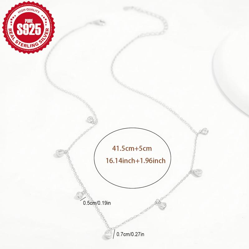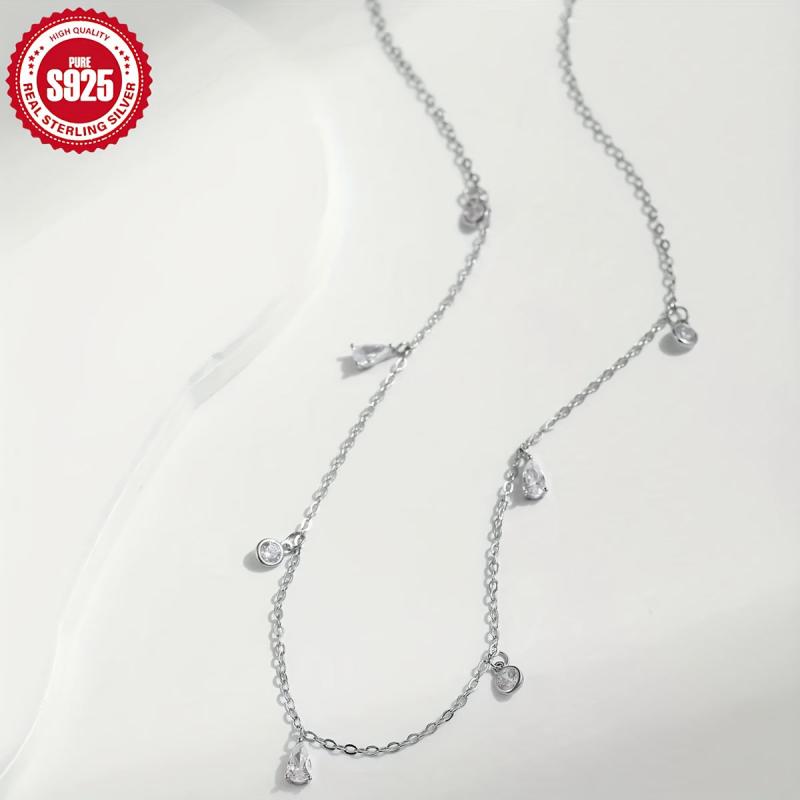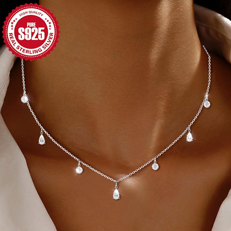 Elegant silver S925 necklace featuring a round synthetic zirconia water drop design. Perfect for daily wear or special occasions. Makes a great gift for women.