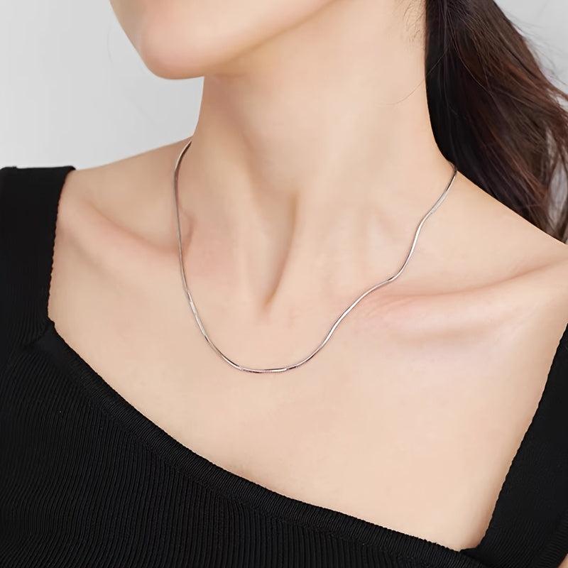 This snake chain necklace is a modern and minimalist piece of jewelry suitable for both men and women. It is perfect for weddings, parties, and casual attire with its sleek, smooth, and polished design. The durable metal construction ensures longevity and versatility.