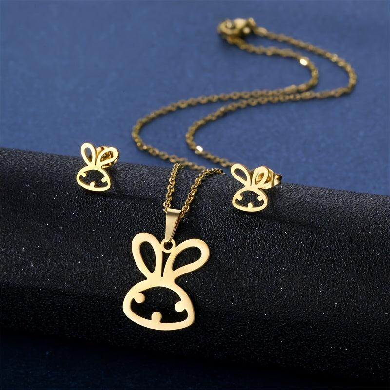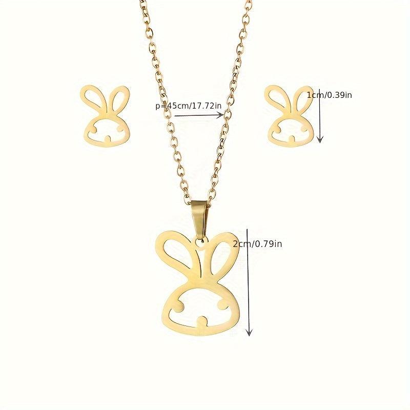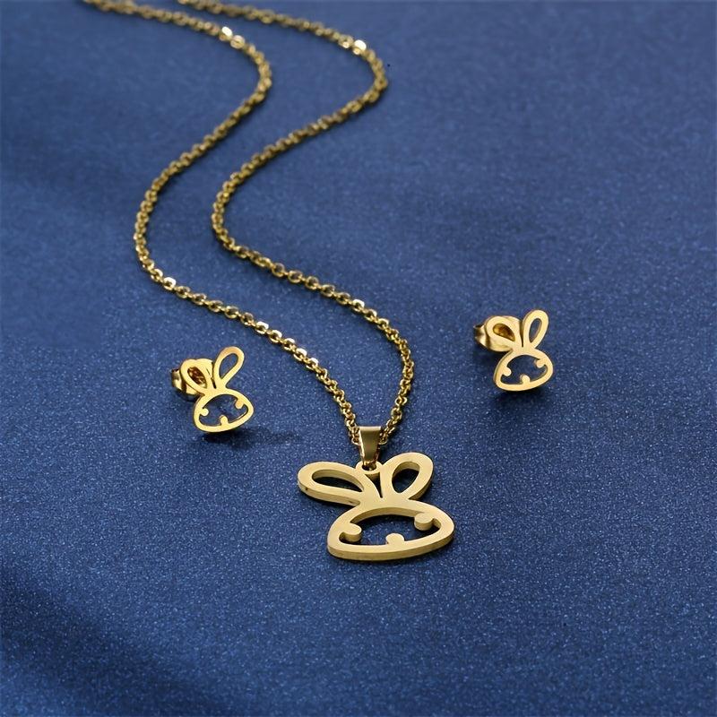 Complete your look with this stylish rabbit pendant necklace and earring set. Perfect for adding a touch of charm to any outfit.