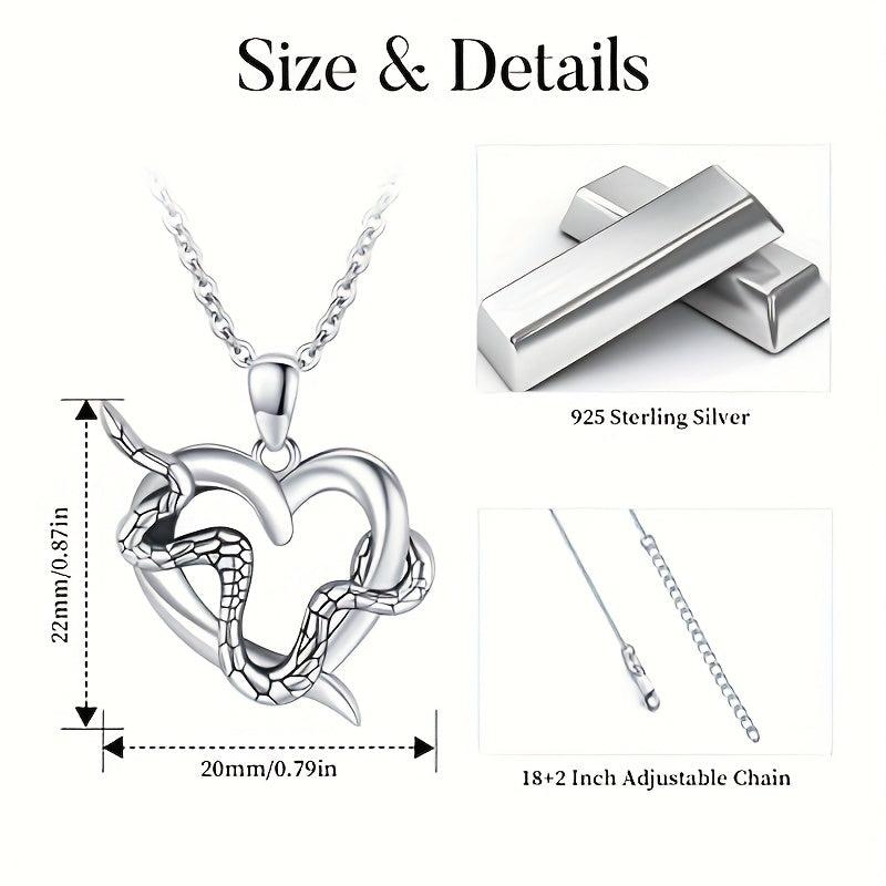 Snake Necklace 925 Silver Heart Pendant Chain Heart Jewelry