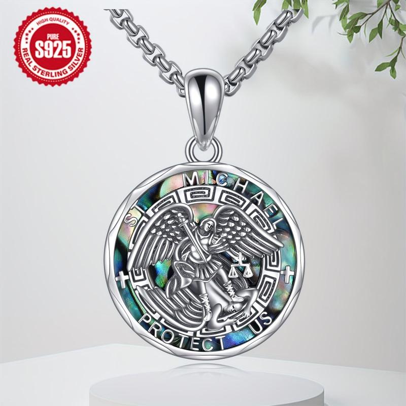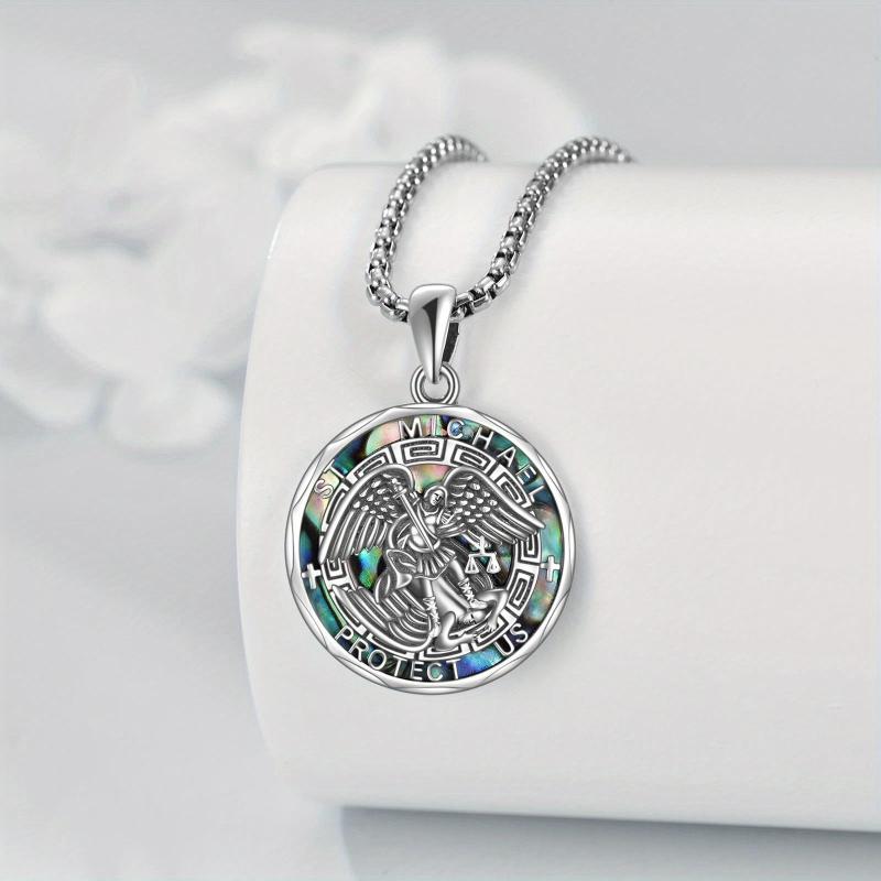 This YFN Saint Michael Necklace is made of 925 sterling silver and features a stunning Abalone Shell. It symbolizes the protection of St. Michael Archangel and is suitable for both women and men.