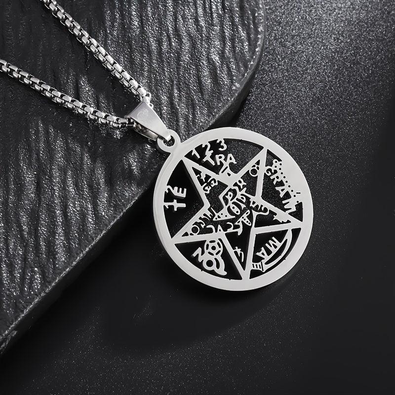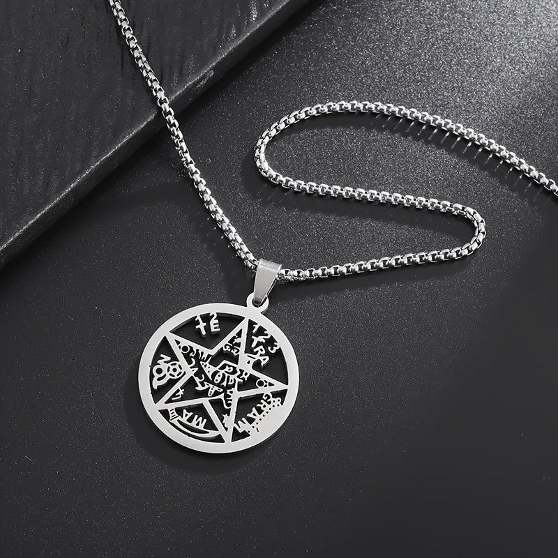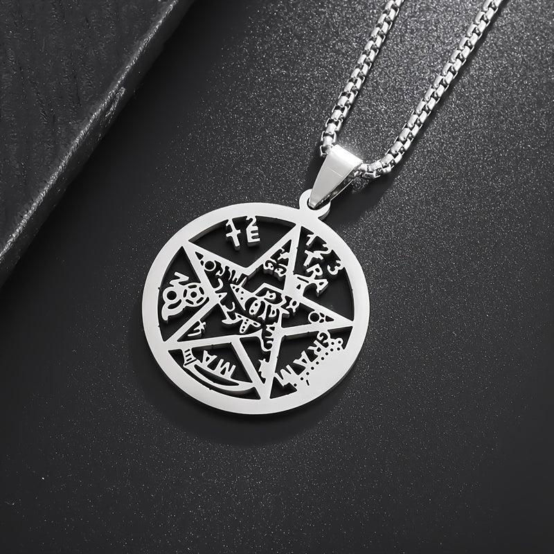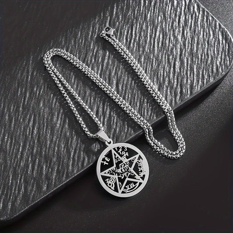 This pendant necklace features a stainless steel Jewish Hebrew four-letter Wicca pentagram star design, making it an ideal religious amulet jewelry for both men and women.