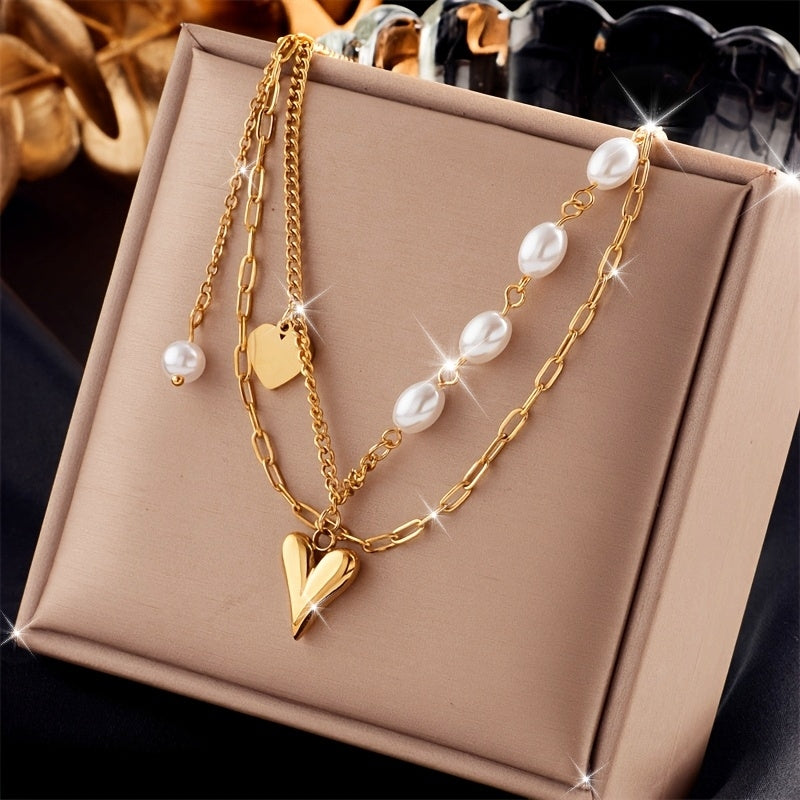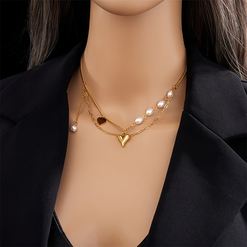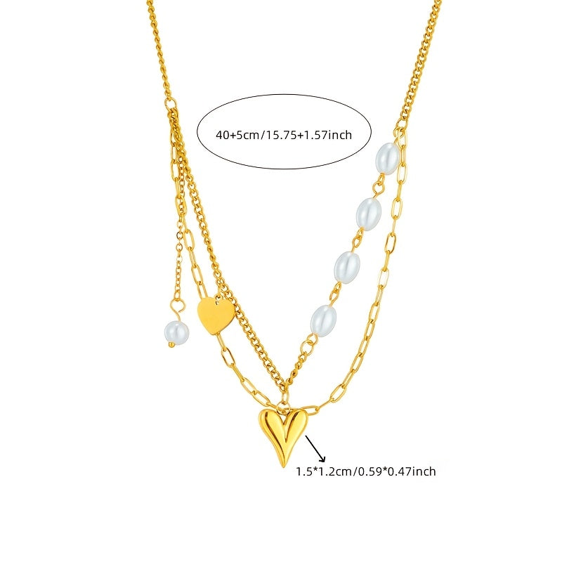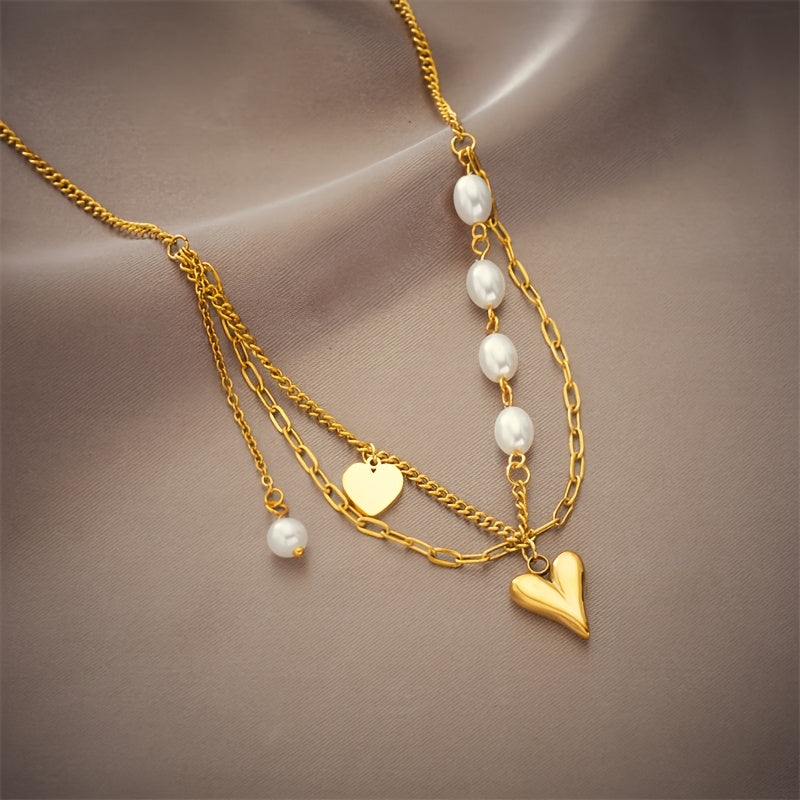 Elevate your style with this stainless steel layer chain necklace featuring a heart pendant and beads. This bohemian vintage piece adds a touch of charm to any outfit.