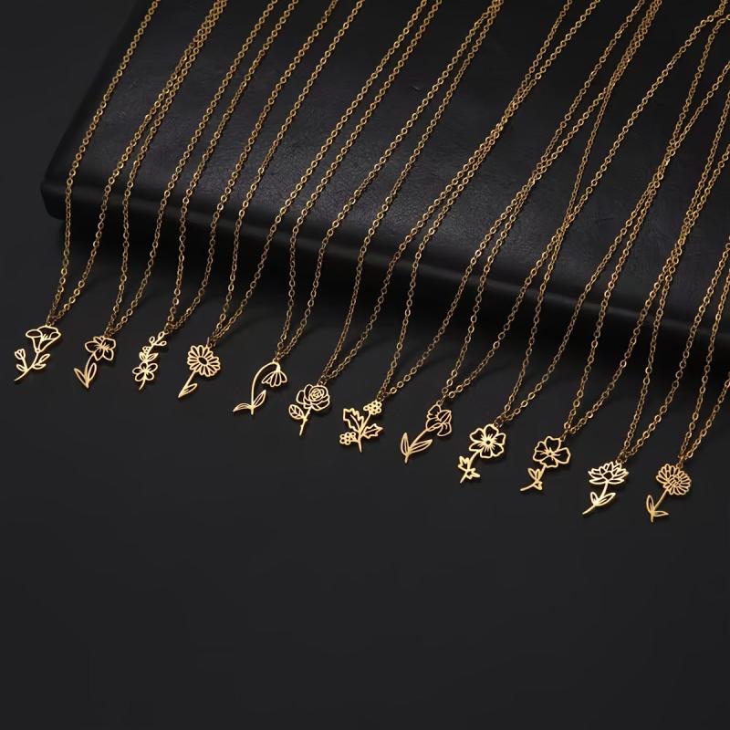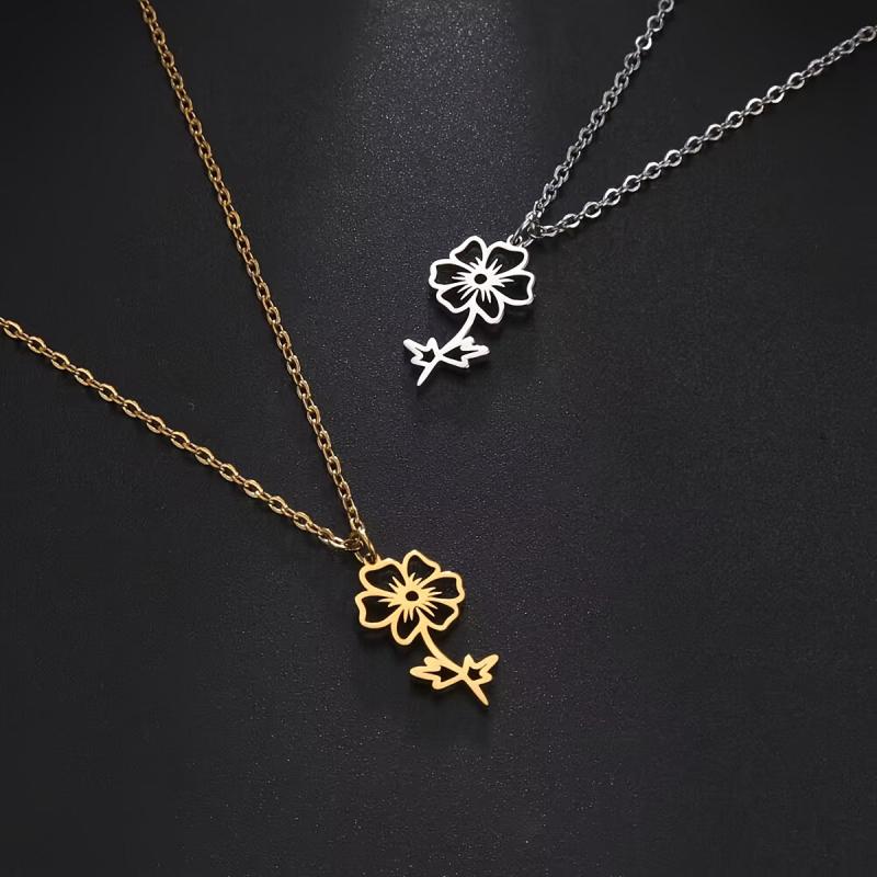 Beautiful stainless steel pendant necklaces featuring moon flower designs. Perfect jewelry for family and friends.