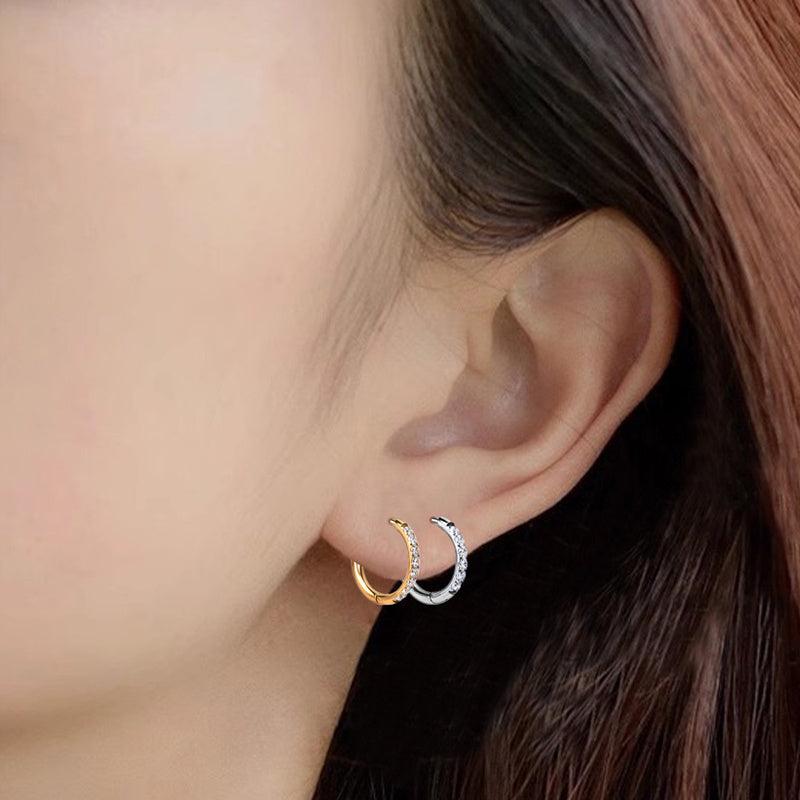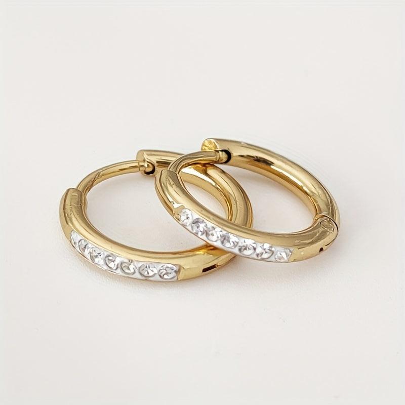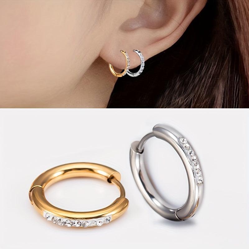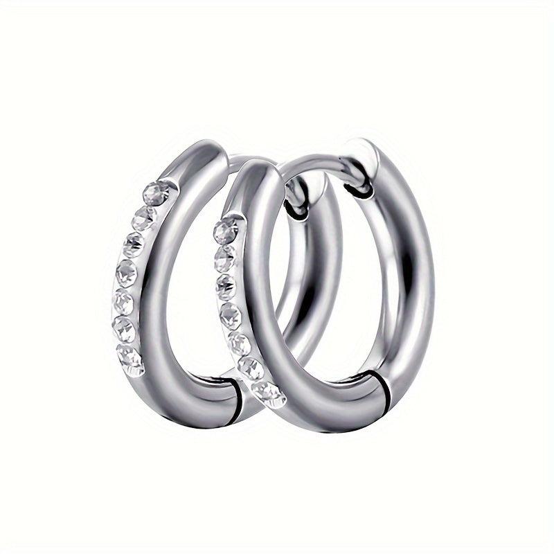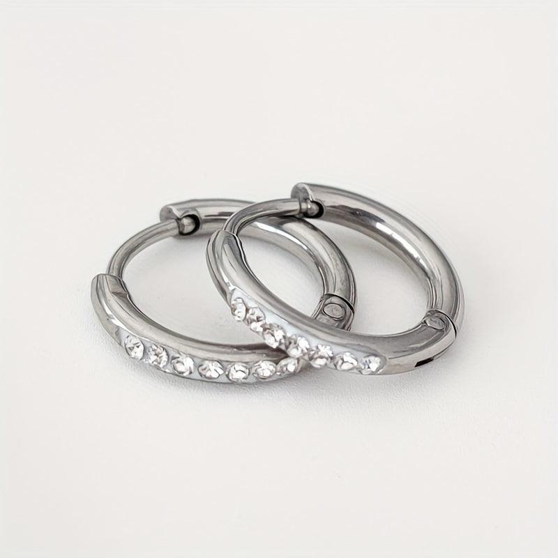 Add a touch of glamour to your look with these stainless steel rhinestone hoop earrings.