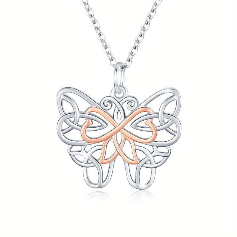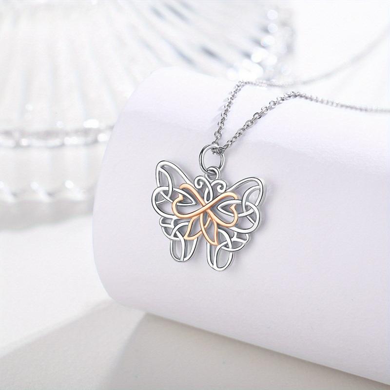 Beautiful 925 sterling silver necklace with Celtic butterfly pendant, perfect for mothers and daughters. A lovely piece of jewelry for women and girls.