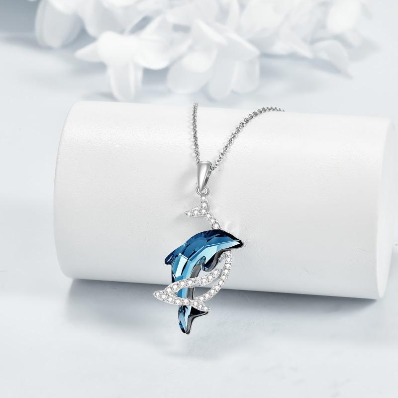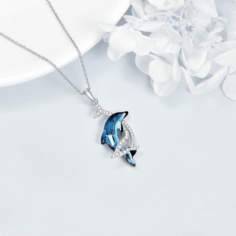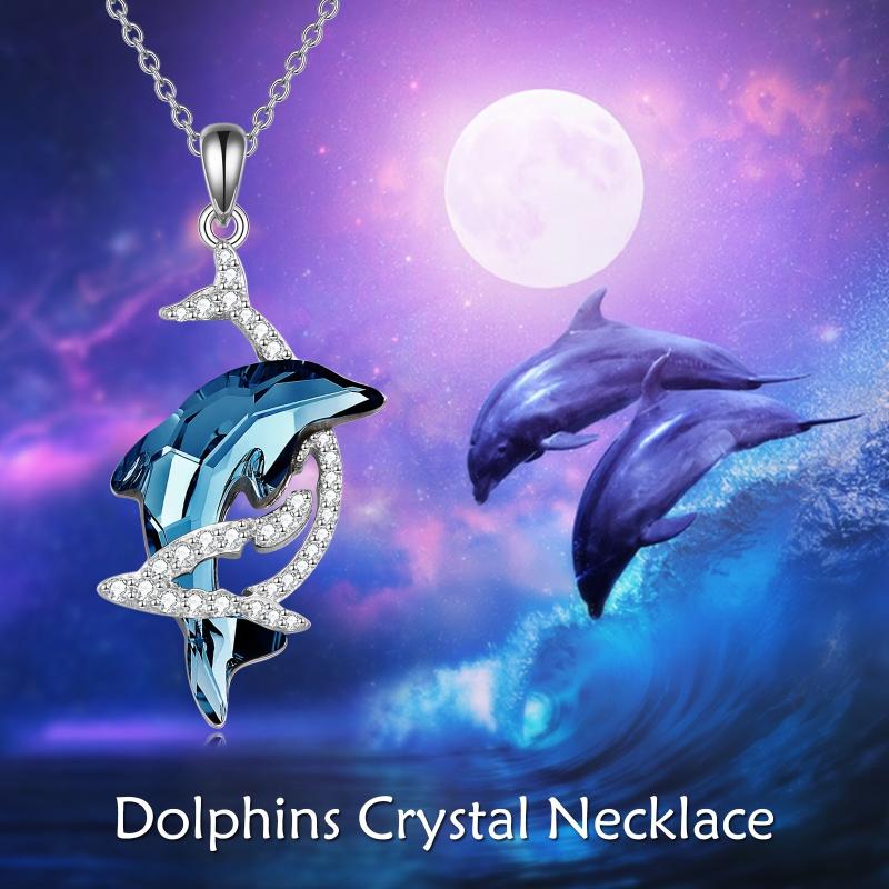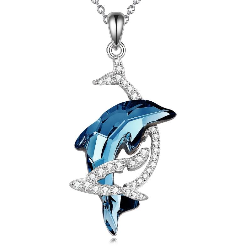 This beautiful sterling silver necklace features a pair of playful dolphins. Perfect as a Valentine or Christmas gift for dolphin lovers, mothers, and daughters.
