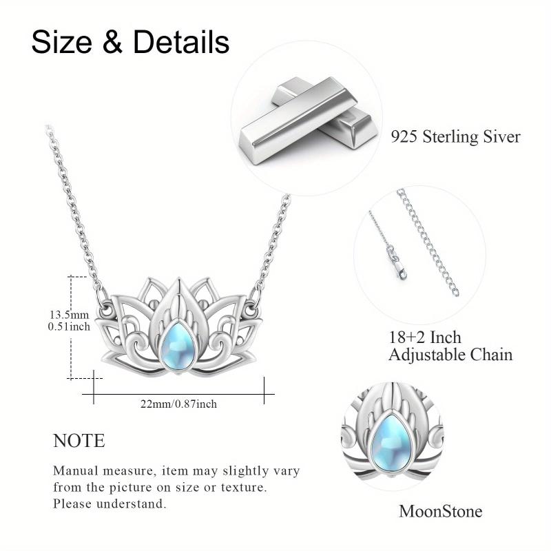 Sterling Silver Lotus Necklace Moonstone Pendant Women&