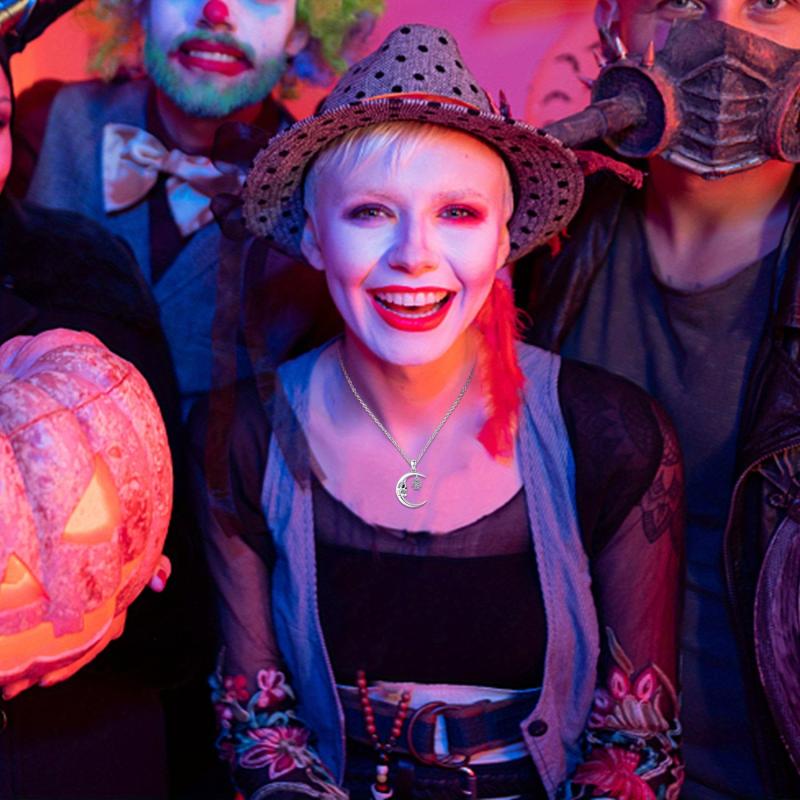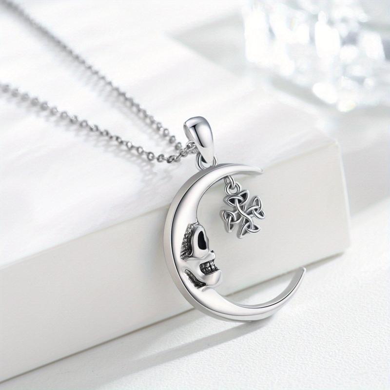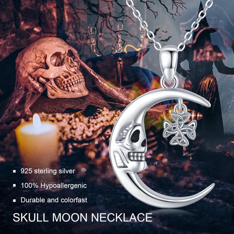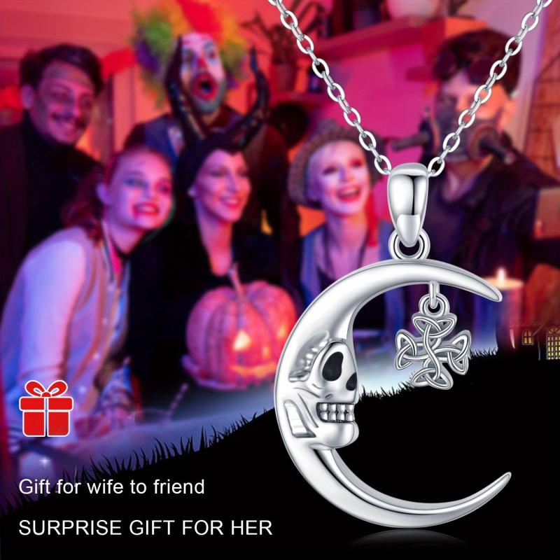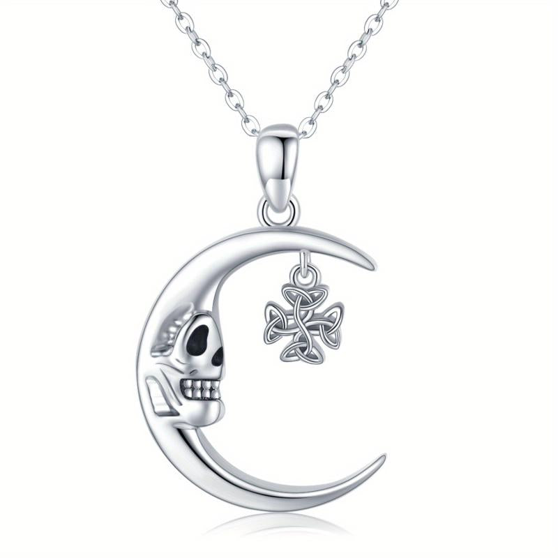 This stunning 925 sterling silver necklace features a detailed skull with a Celtic moon design, making it a perfect accessory for Halloween or unique jewelry lovers.