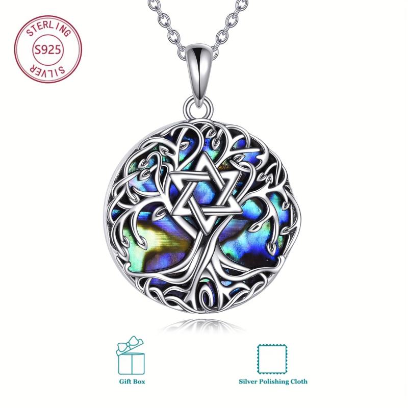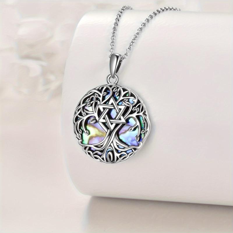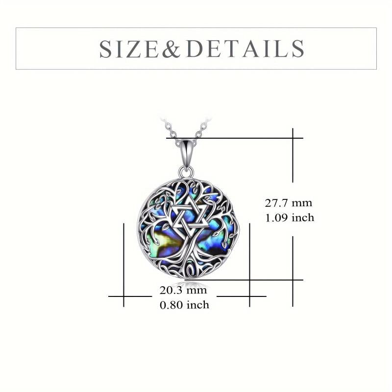This stunning necklace features a Tree of Life pendant with a Star of David design and artificial abalone shell. Made from S925 sterling silver, this Celtic jewelry piece is perfect for both men and women.
