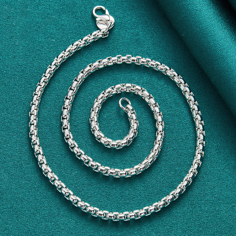 Stylish 4mm Sterling Round Box Chain Necklace Jewelry Gift