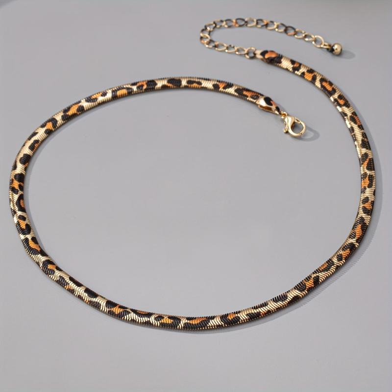 Add a touch of wild style to your summer outfits with this versatile leopard print snake chain necklace.