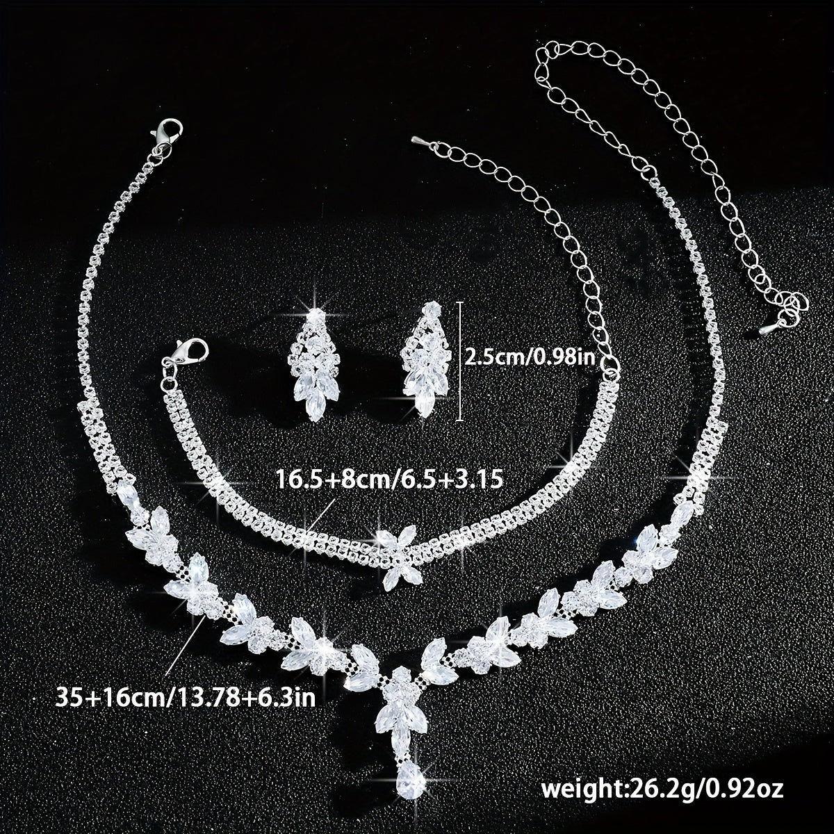 • Includes necklace, bracelet, and earrings