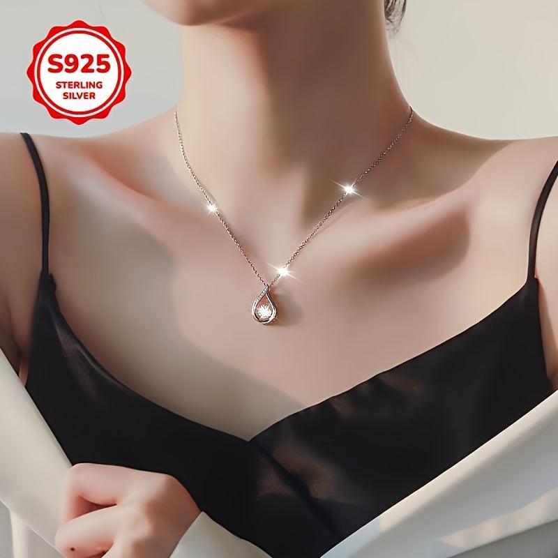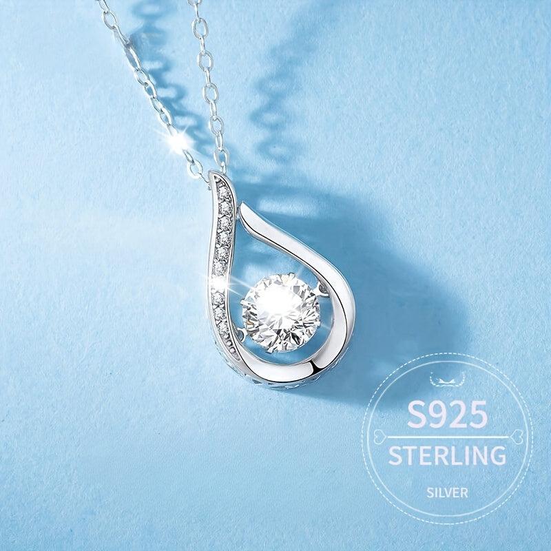 Elegant S925 sterling silver necklace featuring a teardrop pendant adorned with sparkling cubic zirconia. Perfect for both daily wear and special occasions. Ideal gift for birthdays.