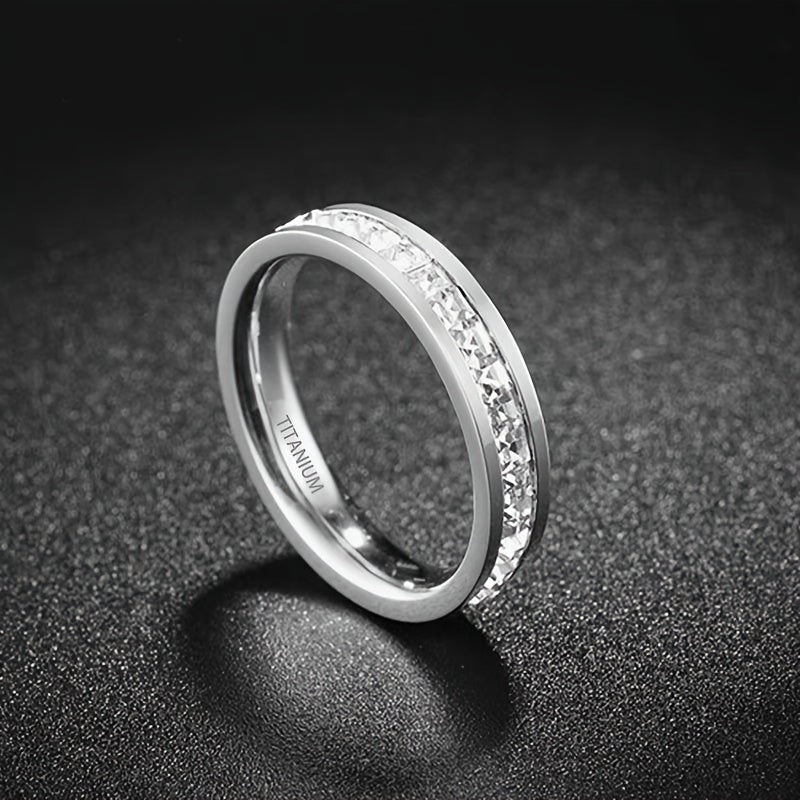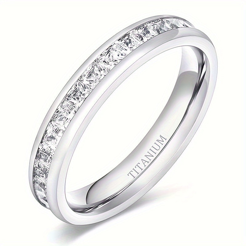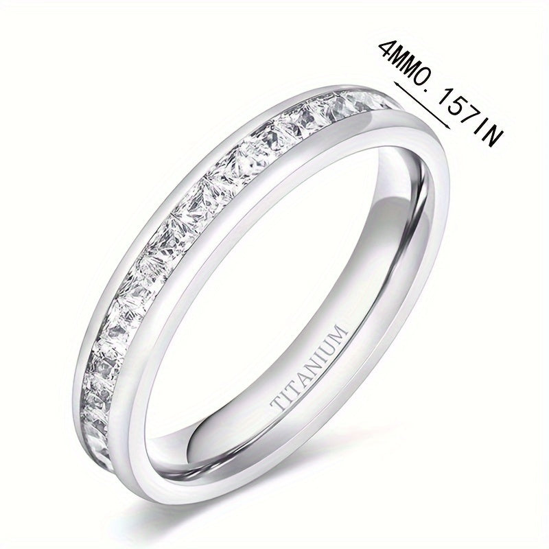 Stylish titanium steel ring featuring a 4mm square cubic zirconia, perfect for weddings and engagements. Fade-resistant design for long-lasting beauty.