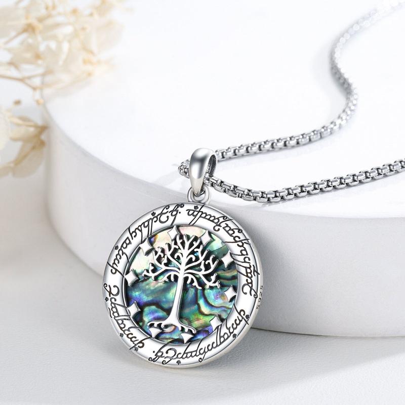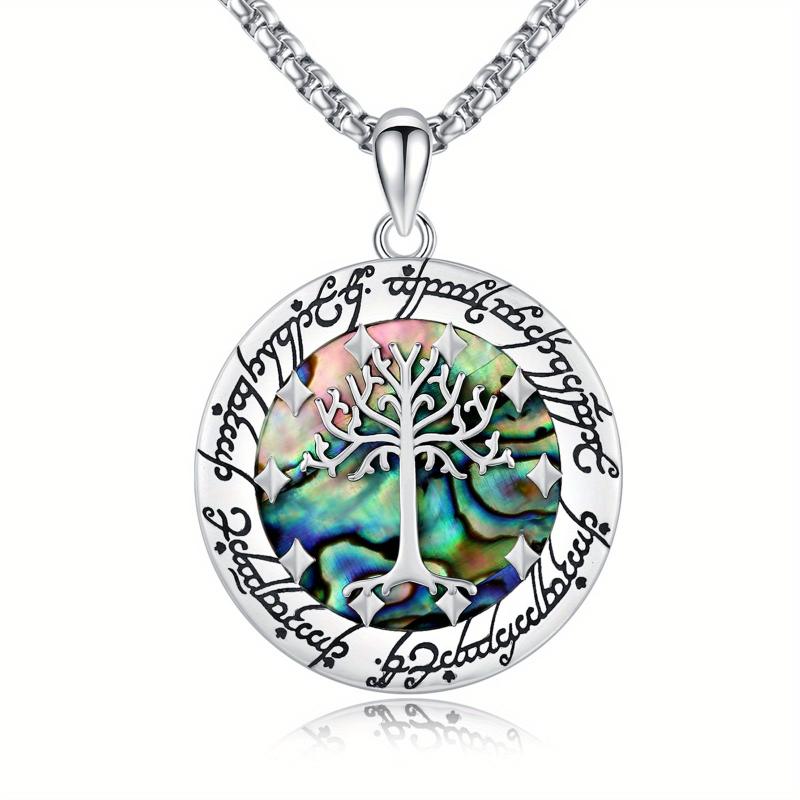 This stunning Tree of Gondor necklace is crafted from 925 sterling silver and features an exquisite abalone shell pendant. A symbol of hope and strength, the Tree of Gondor is a must-have for any Lord of the Rings fan.