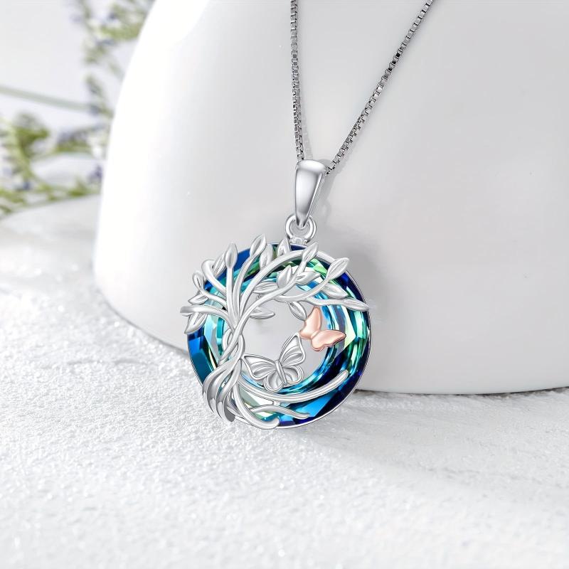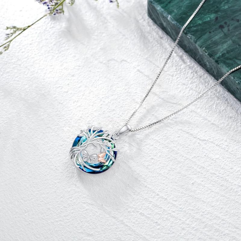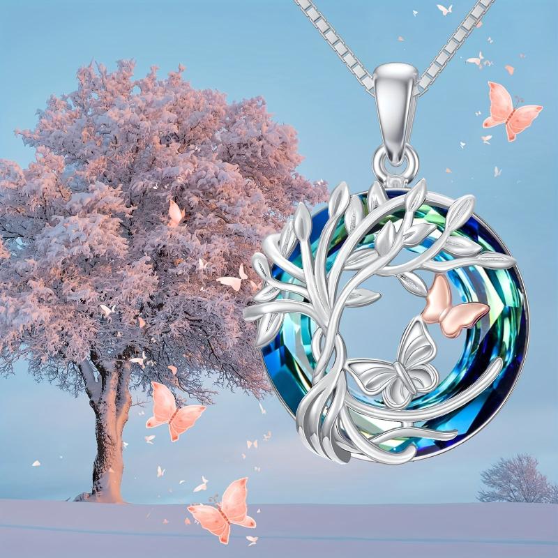 This elegant necklace features a beautiful Tree of Life pendant with a delicate butterfly charm. Perfect gift for your wife, mother, or to celebrate Mother's Birthday.