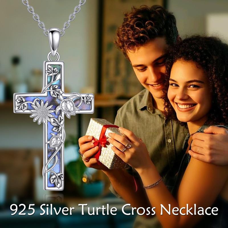 • Sterling silver cross necklace with turtle design