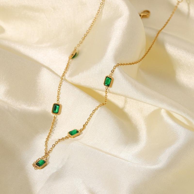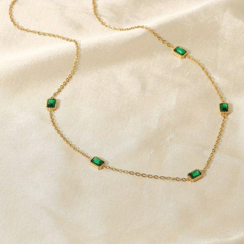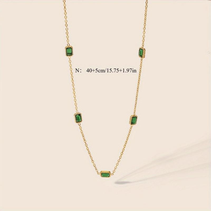 Elevate your style with this vintage-inspired necklace featuring square green gemstones. Perfect for daily wear, parties, and as a versatile accessory.