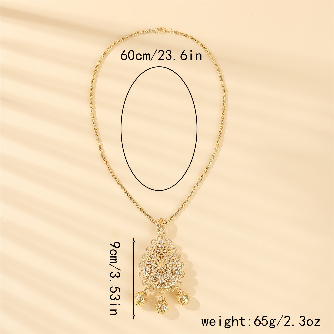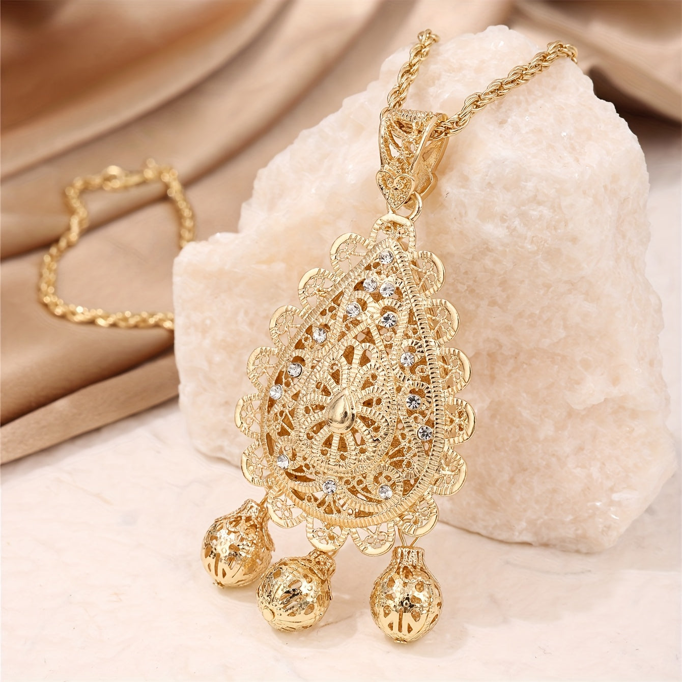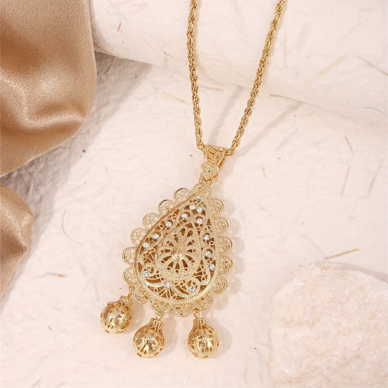 Elegant vintage Algerian pendant necklace with rhinestone and beaded double layer design. Made with high-quality KC golden plating.