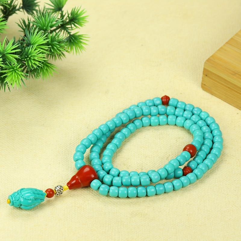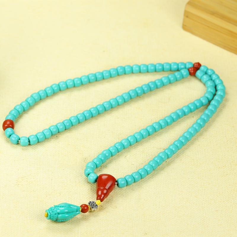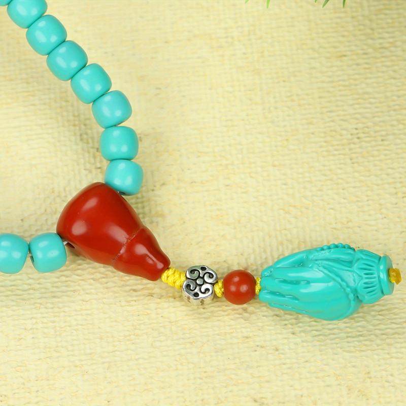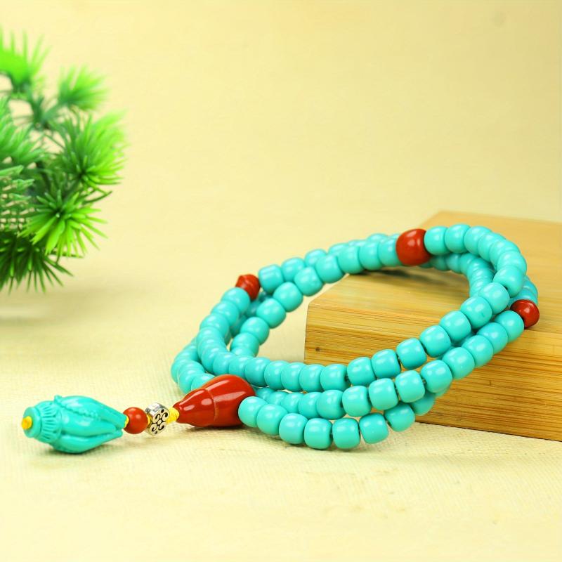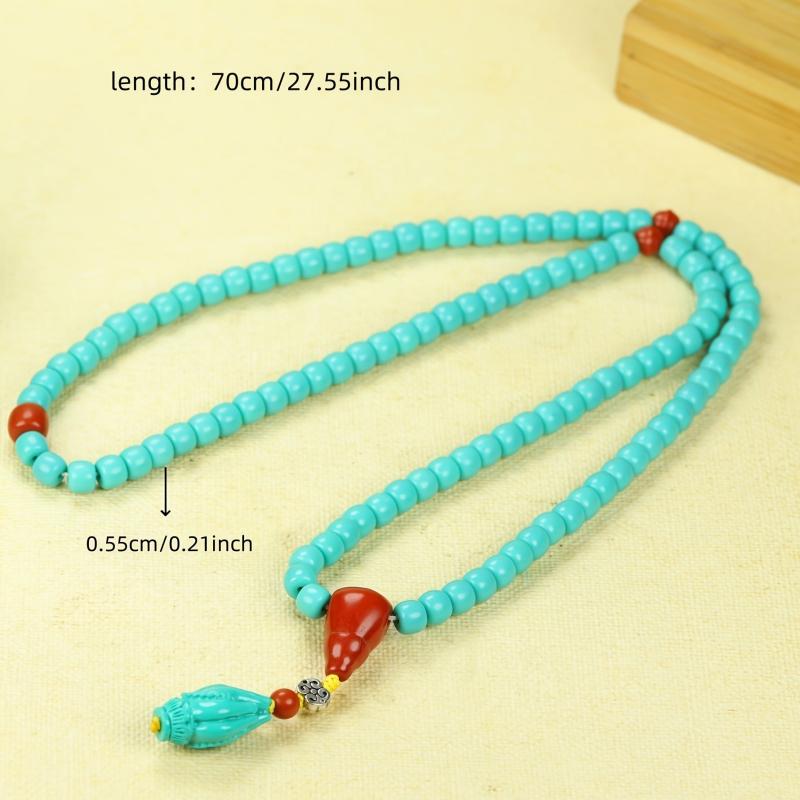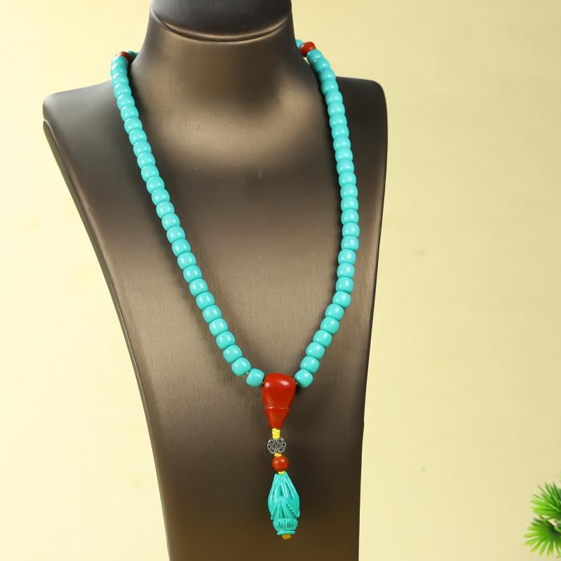 Vintage Bohemian Green Turquoise Bead Necklace with Red And Tassels