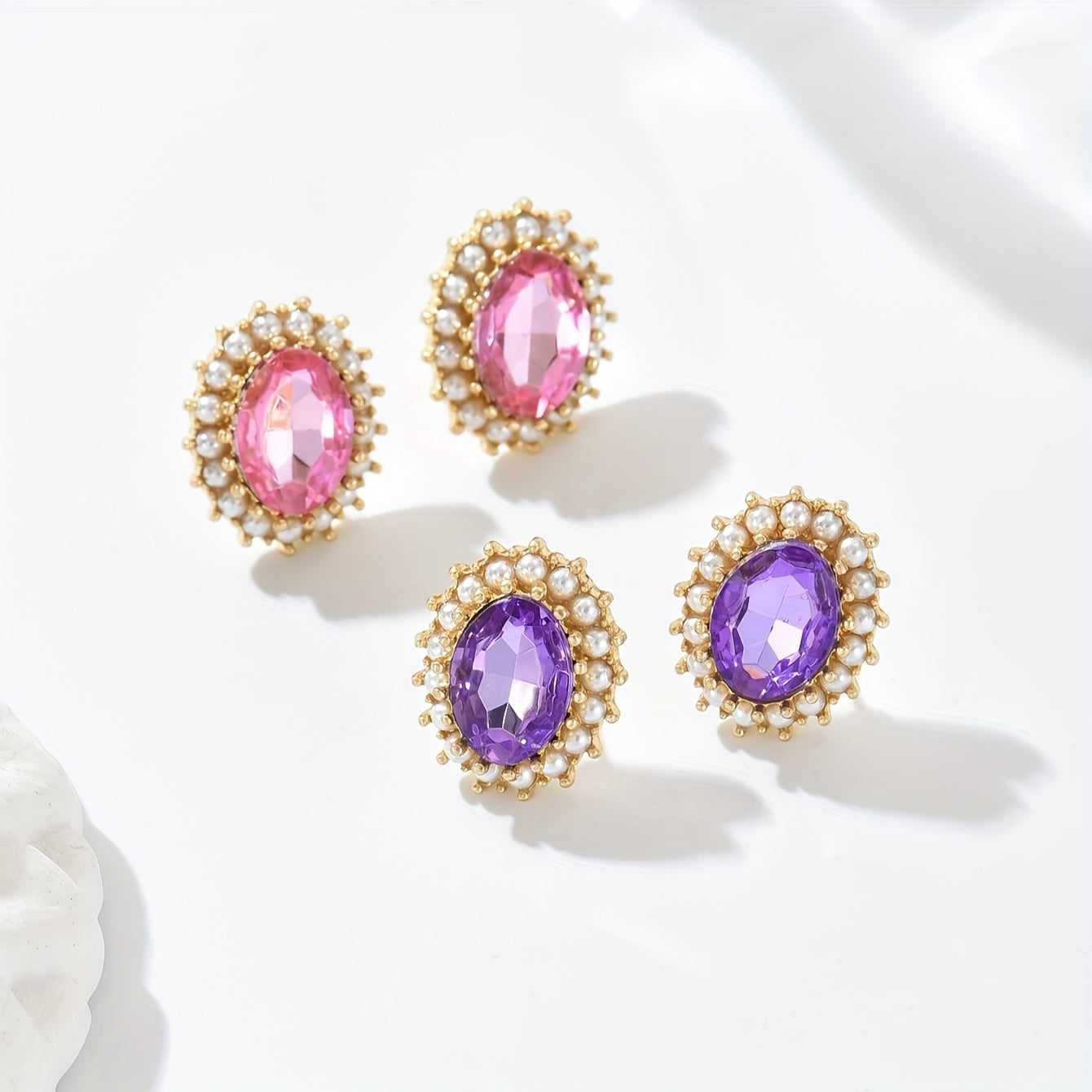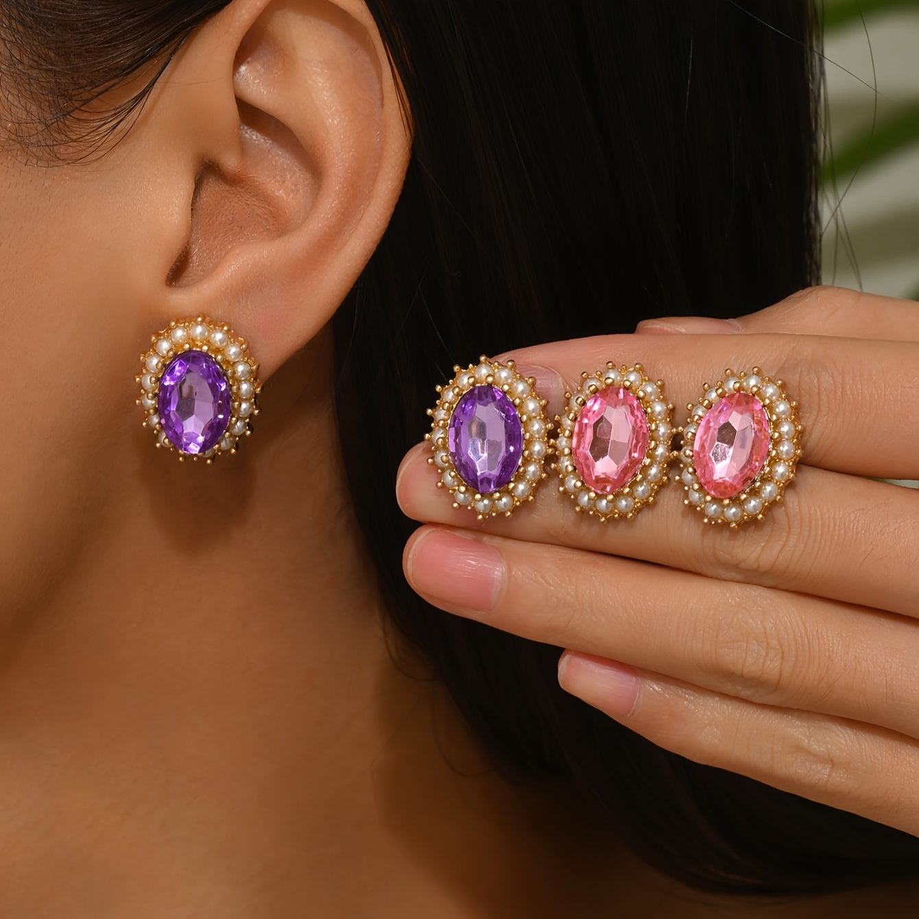 Elegant vintage style earrings with Bohemian and rhinestone design, featuring purple gemstone accents. Perfect for daily wear and parties year-round.