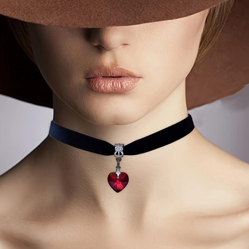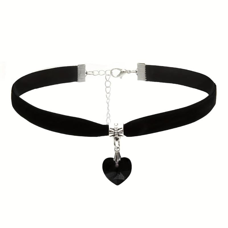 Vintage Boho Choker Necklace with Heart Pendant Fabric All Season Wear