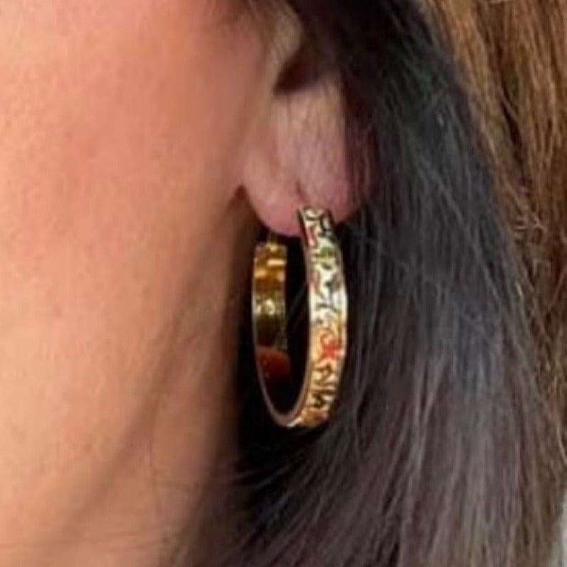 Add a touch of bohemian flair to your look with these vintage hoop earrings. Featuring 18K golden plated resin mosaic accents and antique copper ear hooks, these earrings exude charm and elegance.