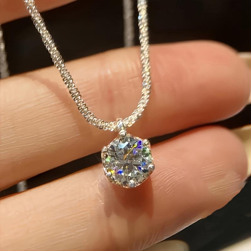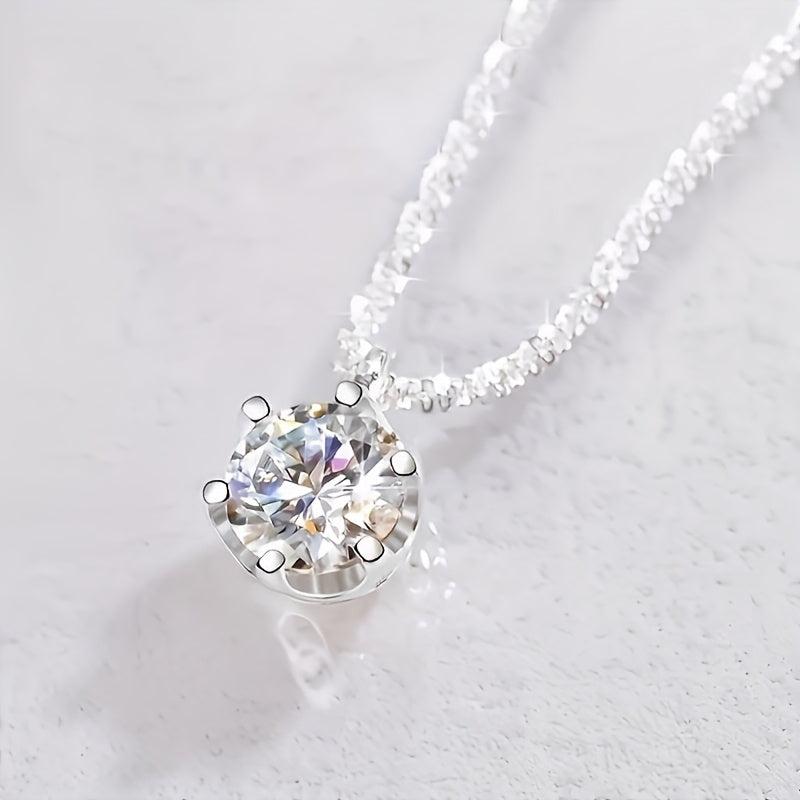 This 925 Silver Plated Necklace features a Synthetic Cubic Zirconia Pendant on a Copper Chain. It is an ideal gift for women, perfect for Christmas.