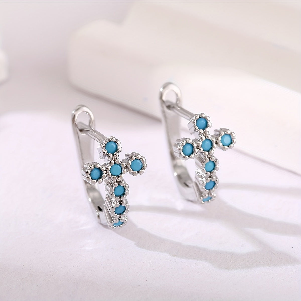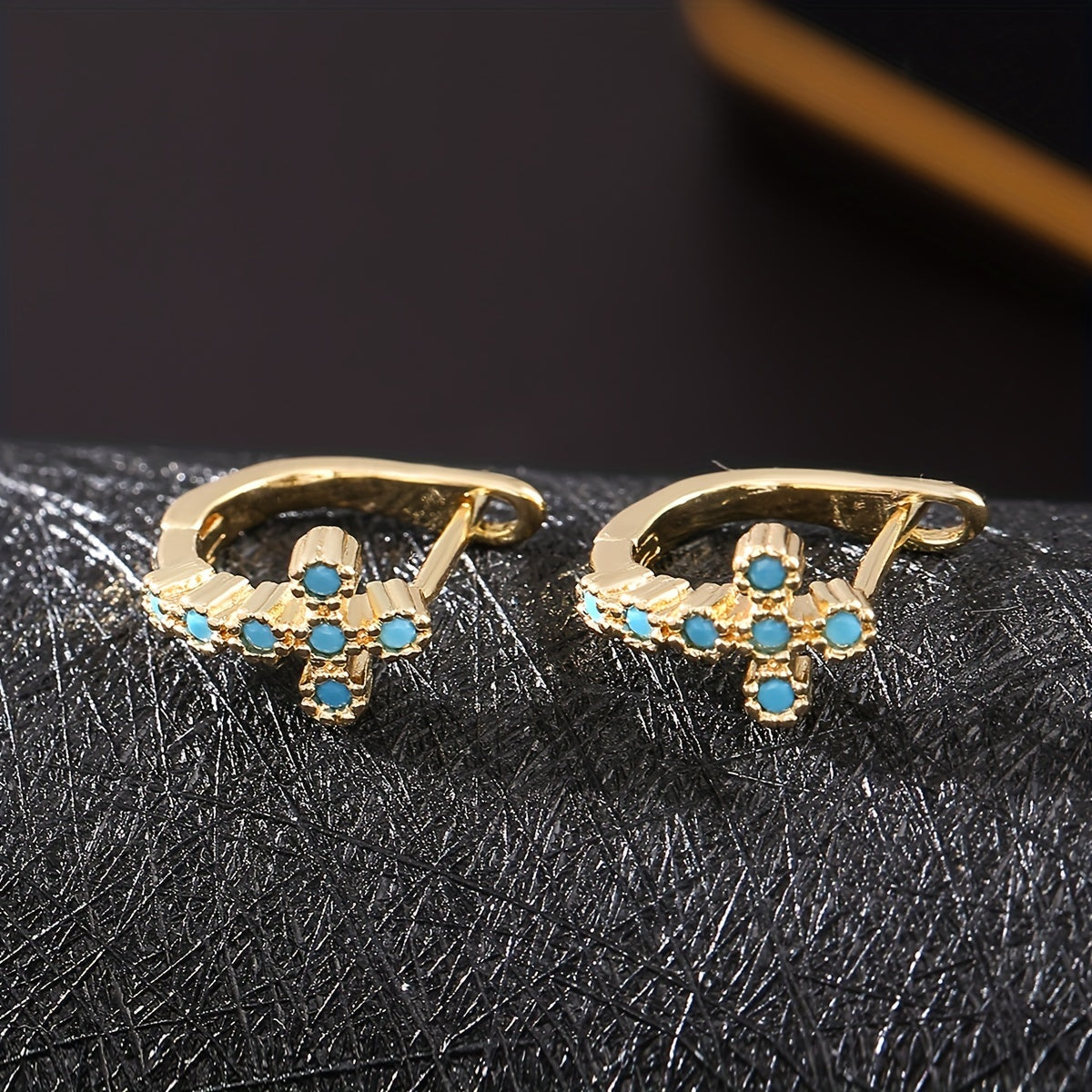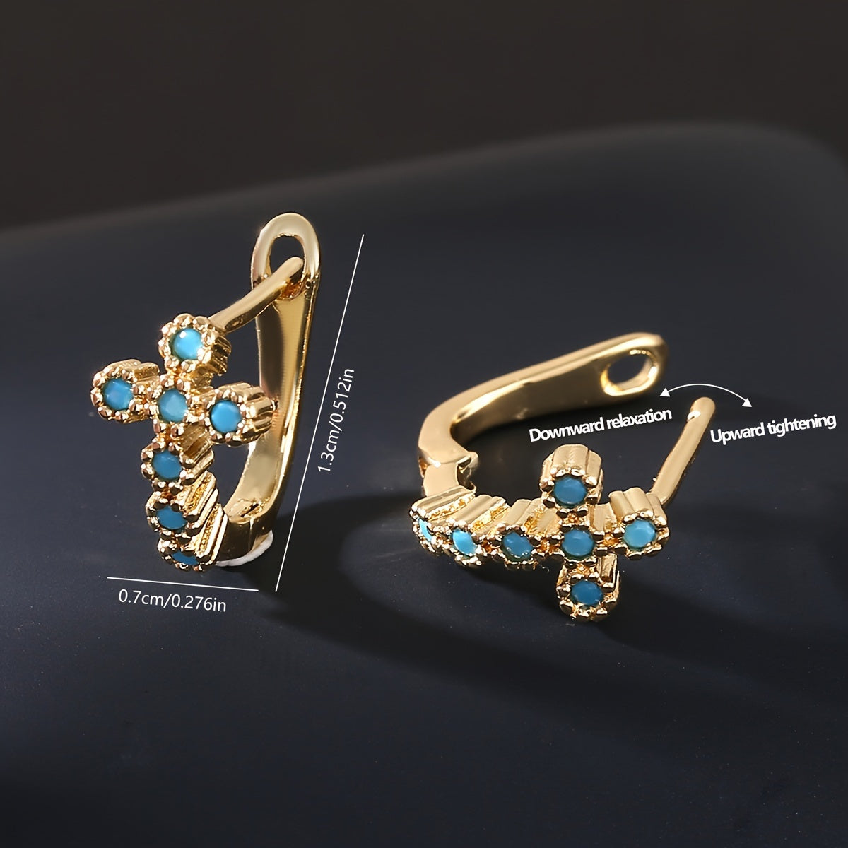 These vintage style earrings feature a copper cross design with a turquoise stone. They are unique and eye-catching, perfect for adding a boho touch to your outfit.
