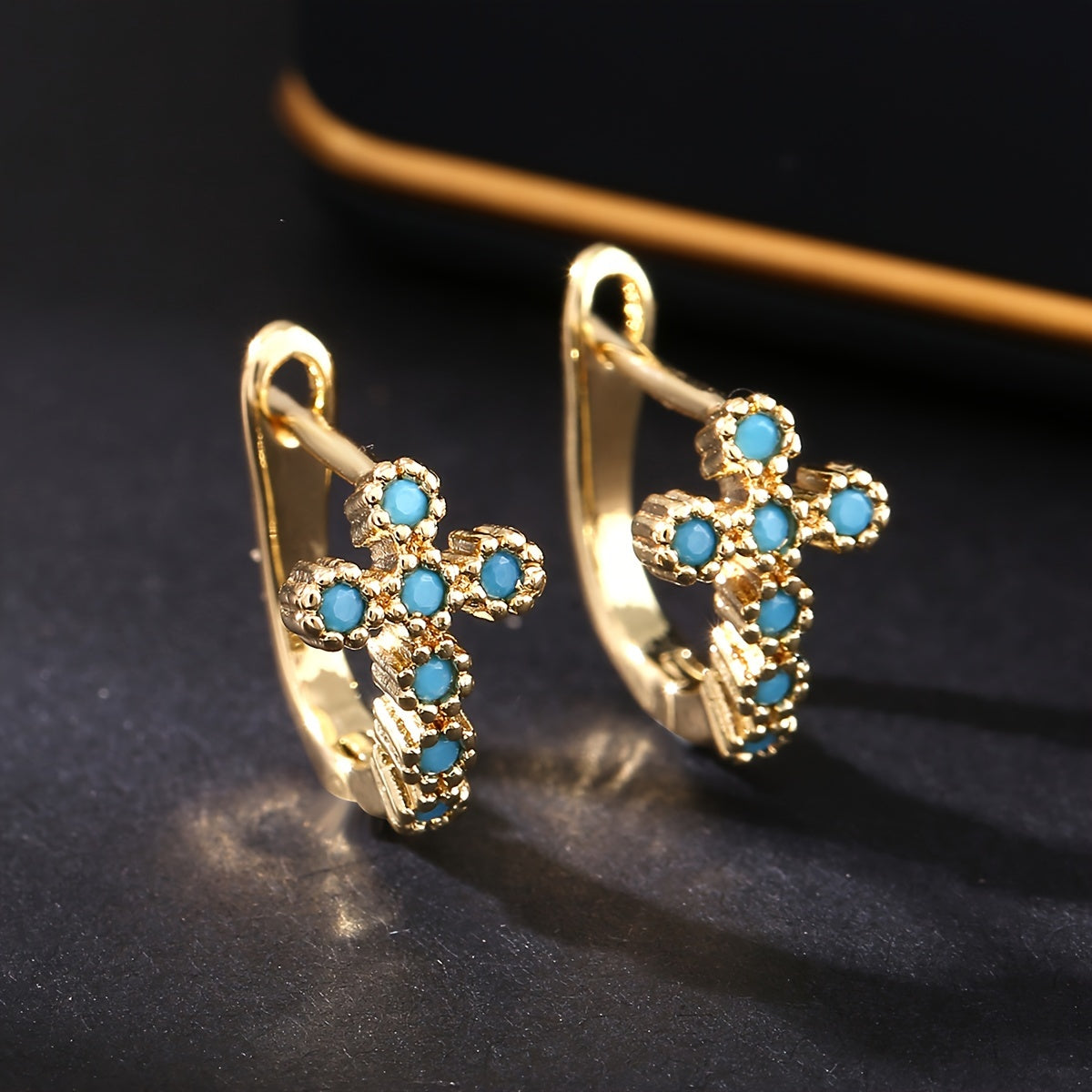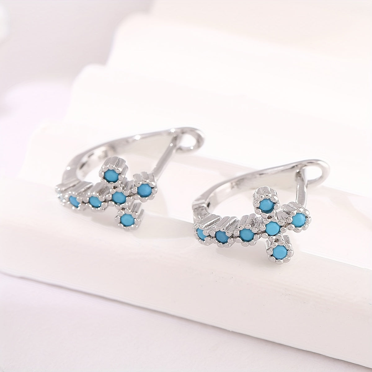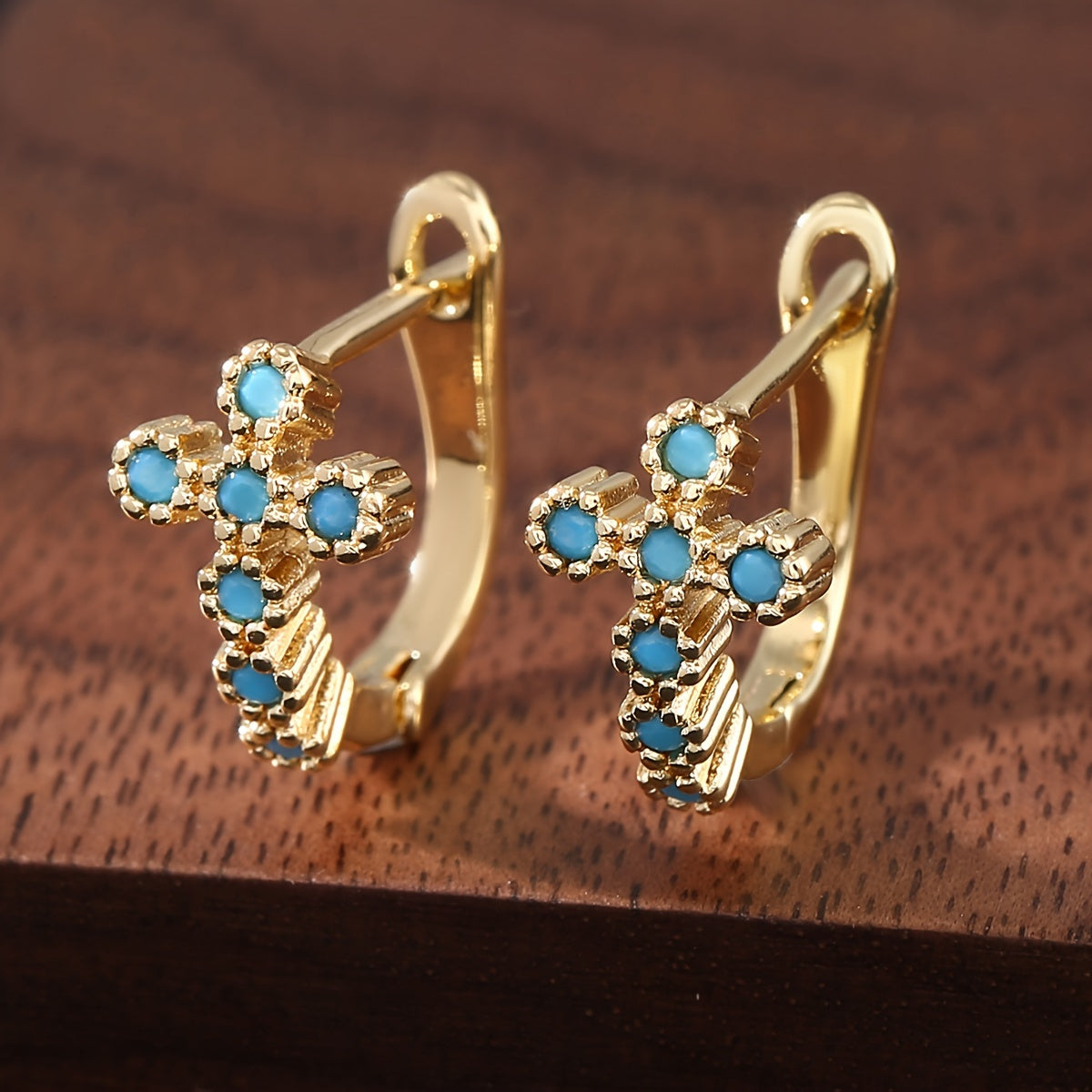 These vintage style earrings feature a copper cross design with a turquoise stone. They are unique and eye-catching, perfect for adding a boho touch to your outfit.