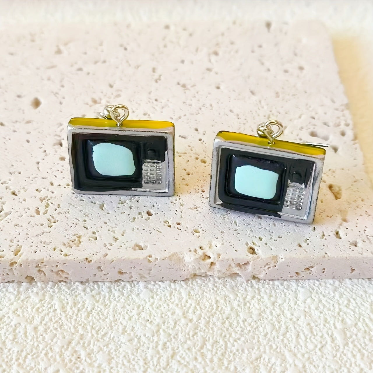 Add a touch of nostalgia to your outfit with this set of vintage-inspired earrings featuring phone, TV, iron, and radio designs. Perfect for retro enthusiasts!