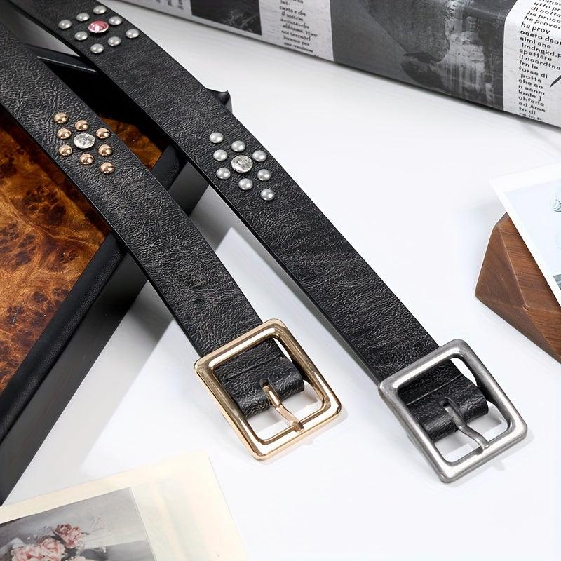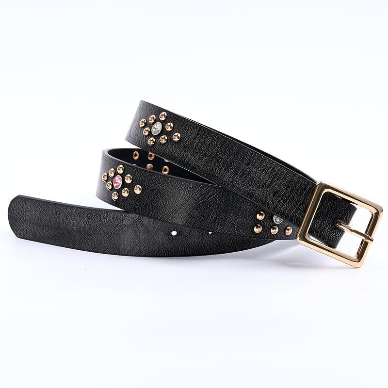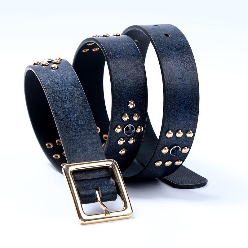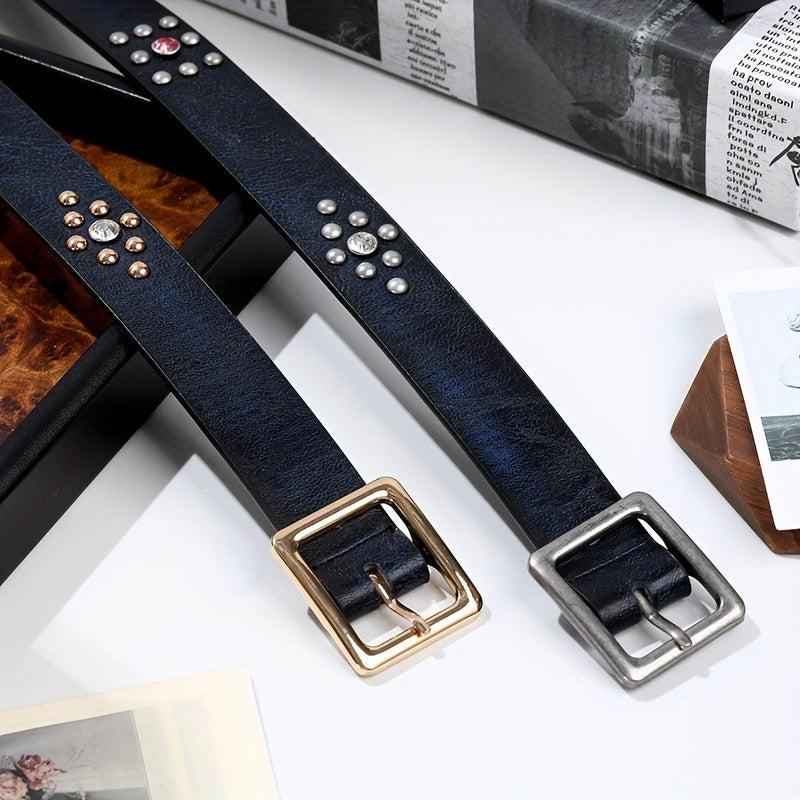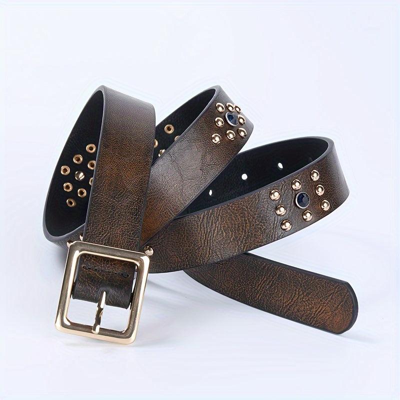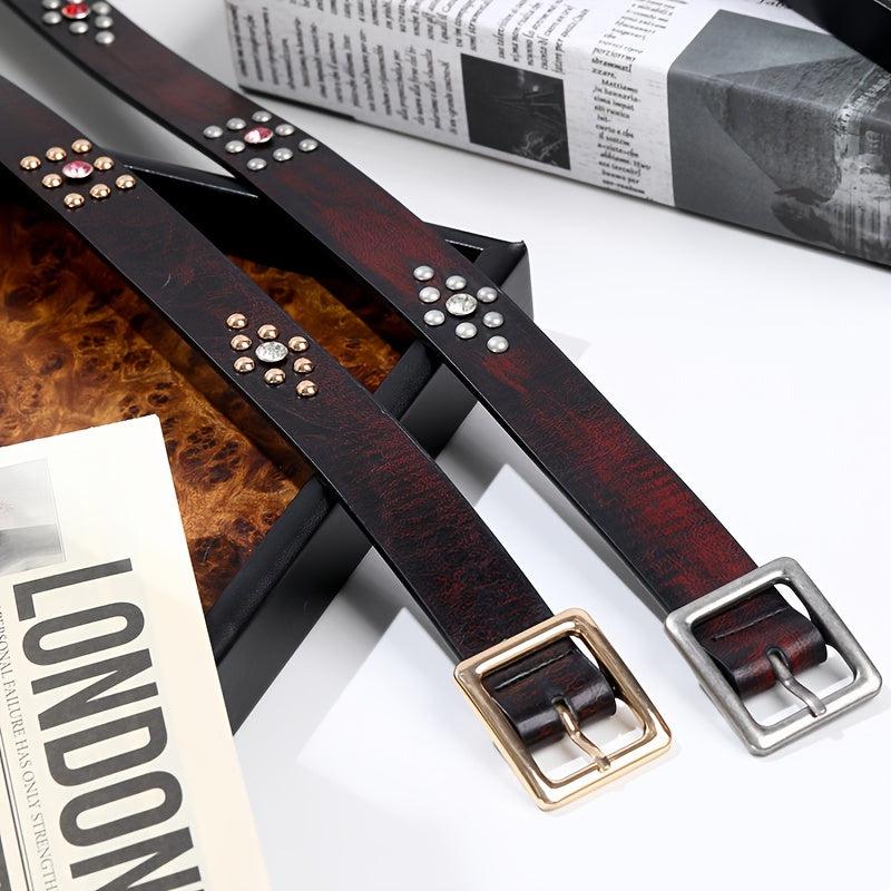 Vintage Crystal Rivet Women's Belt With Copper Buckle