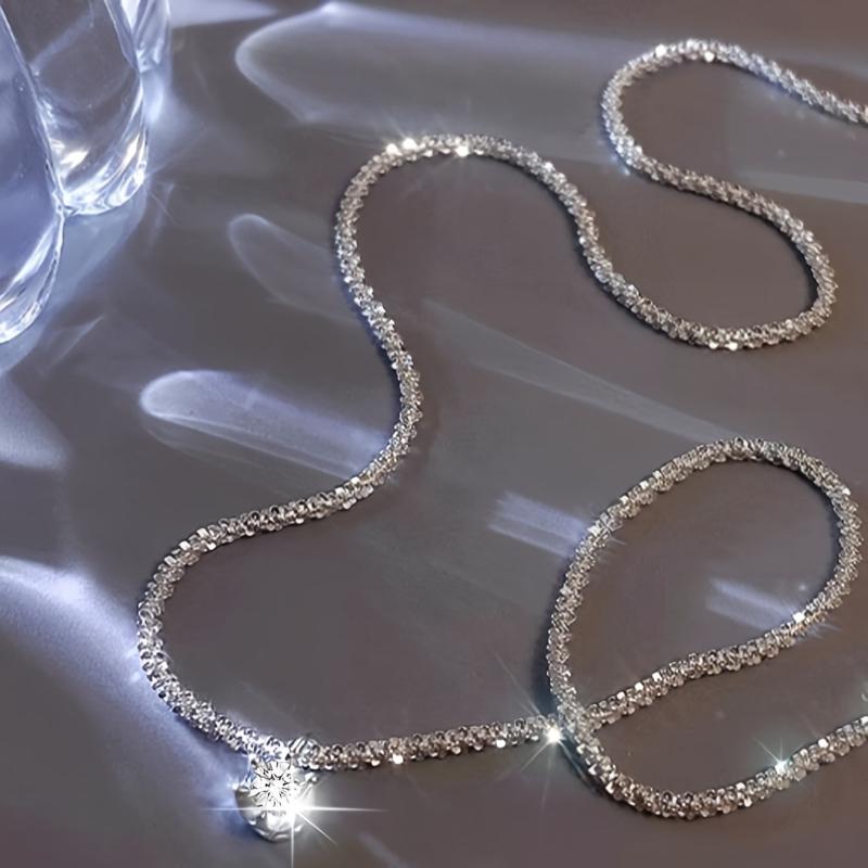 Add a touch of elegance with this sparkling pentagonal small booger necklace. The light shimmering clavicle chain enhances your look.