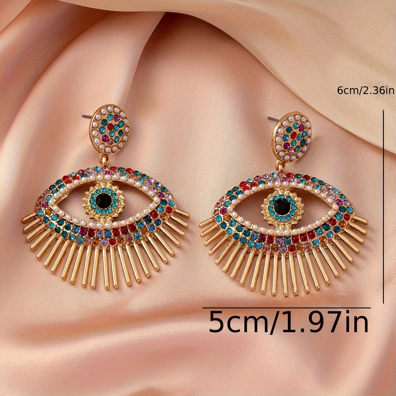 Vintage Eye Gemstone Dangle Earrings Golden Tone Metal
