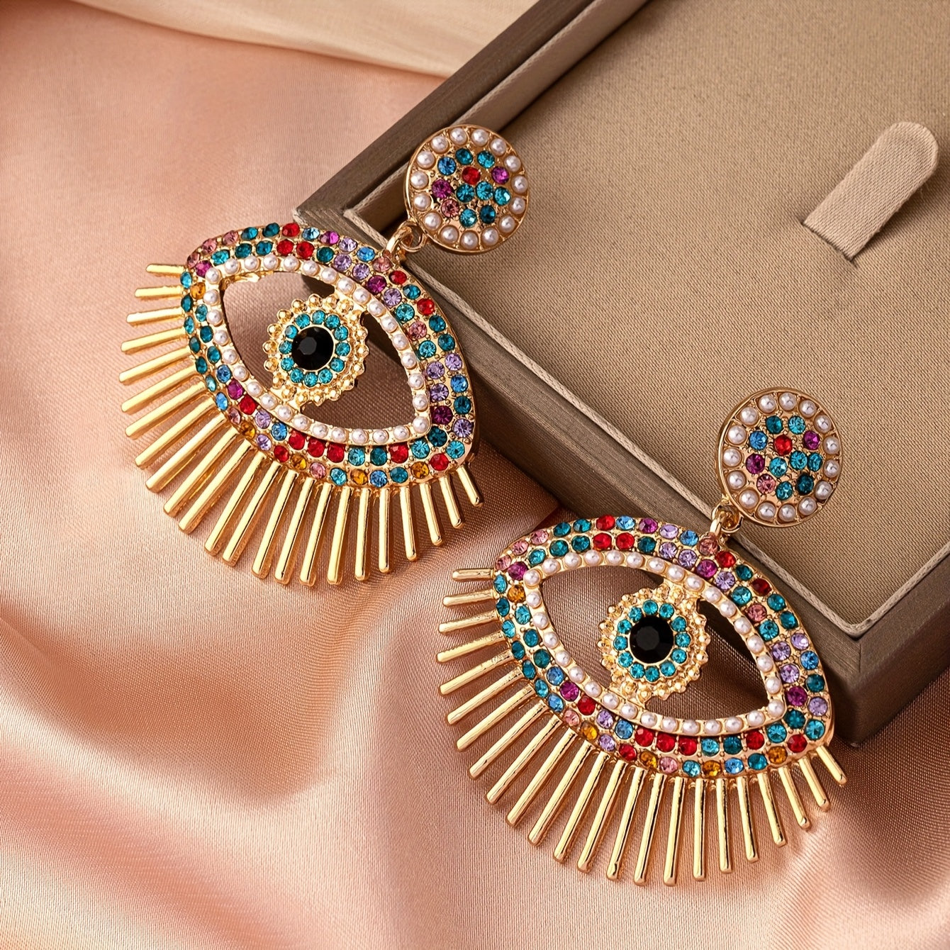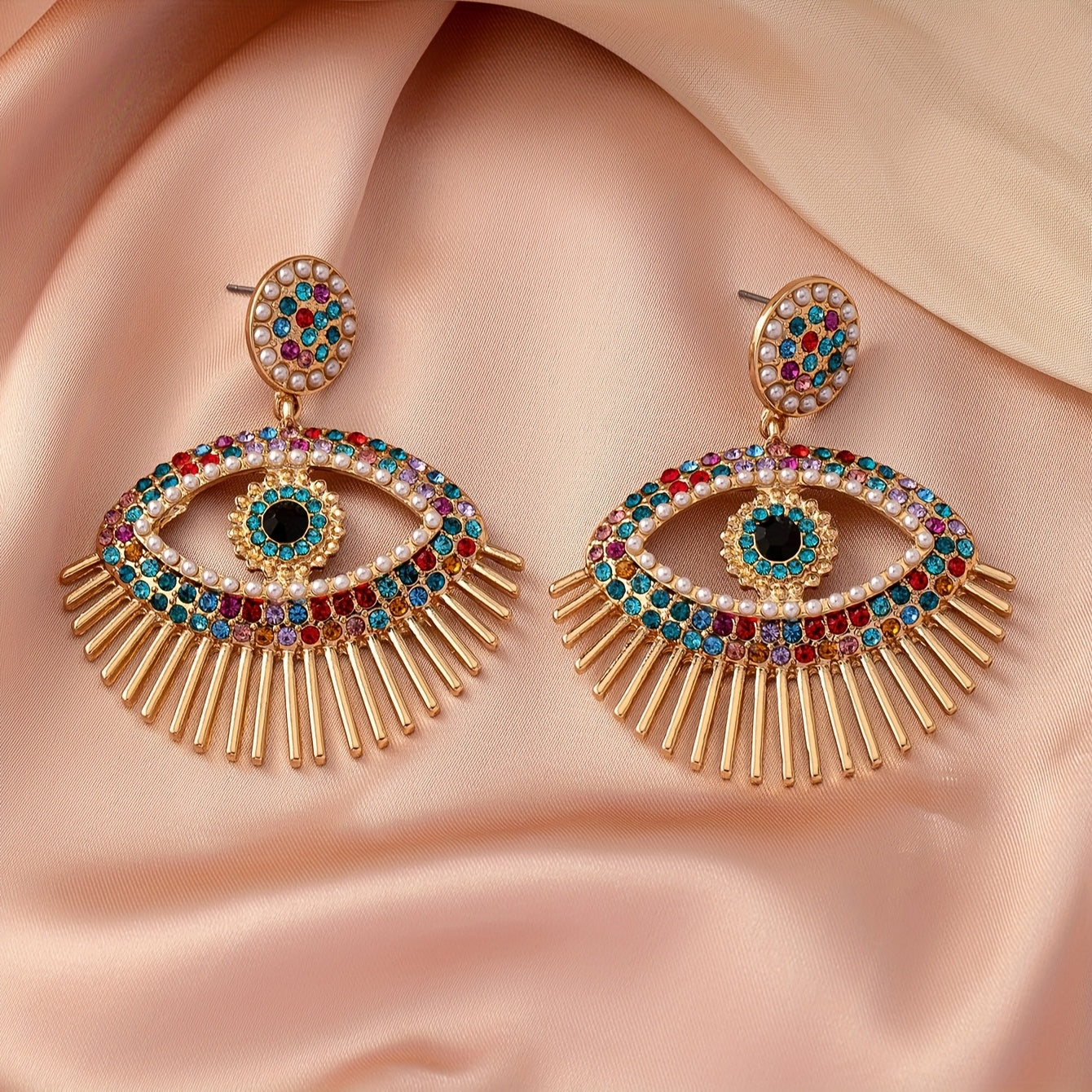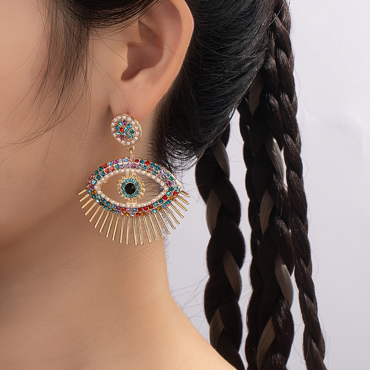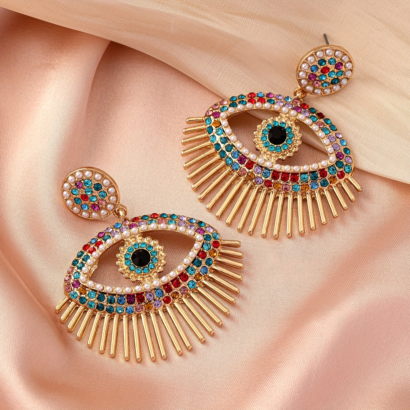 Add a touch of modern vintage flair to your look with these eye-catching earrings featuring multicolor gemstones. Perfect for parties, music festivals, and year-round wear.