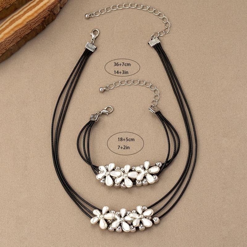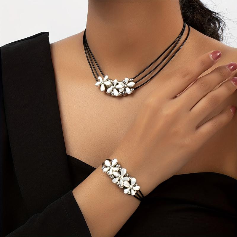 Elegant vintage jewelry set featuring a bracelet and necklace. Perfect accessory to match daily outfits or party wear. Ideal gift for family, friends, and loved ones.